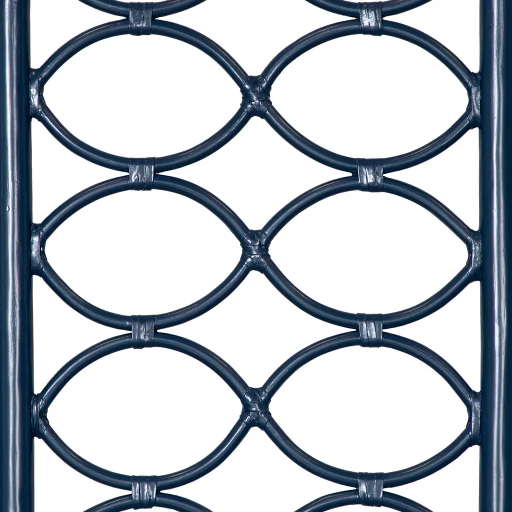 This hand-finished headboard is crafted of rattan with impressive paneled fretwork inspired by the infinity symbol. Leather bindings add strength and durability as well as textural contrast.