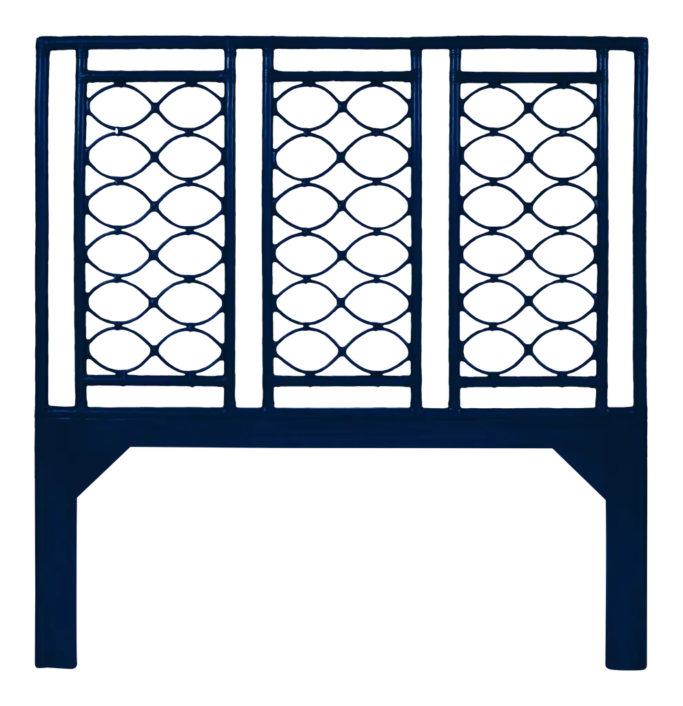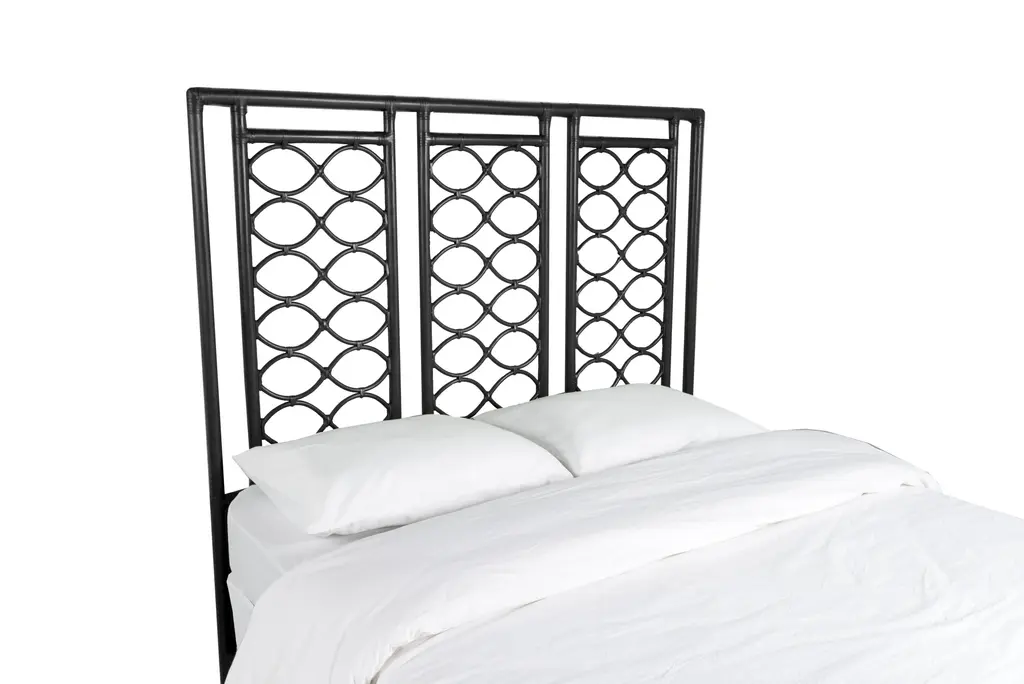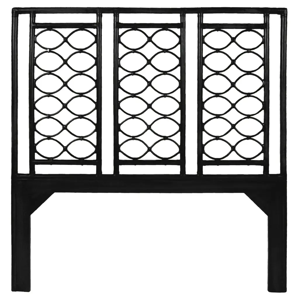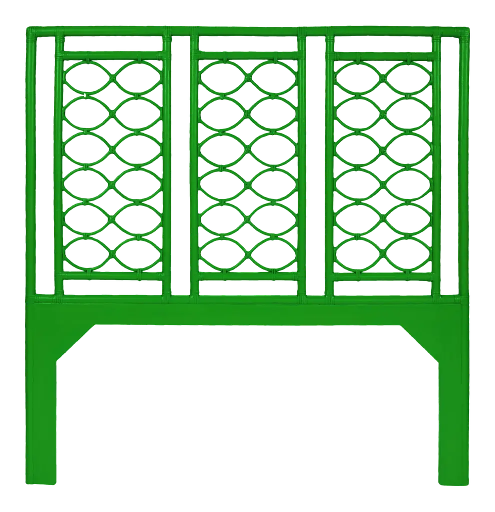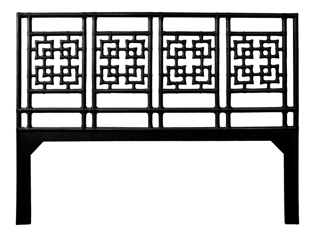 This headboard features classic Rattan design in a geometric pattern. Constructed of solid rattan and hand bound with rawhide bindings. This headboard can be attached to any standard bed frame or hung on the wall. Each headboard is hand finished in the USA and made to order, please allow time for delivery.