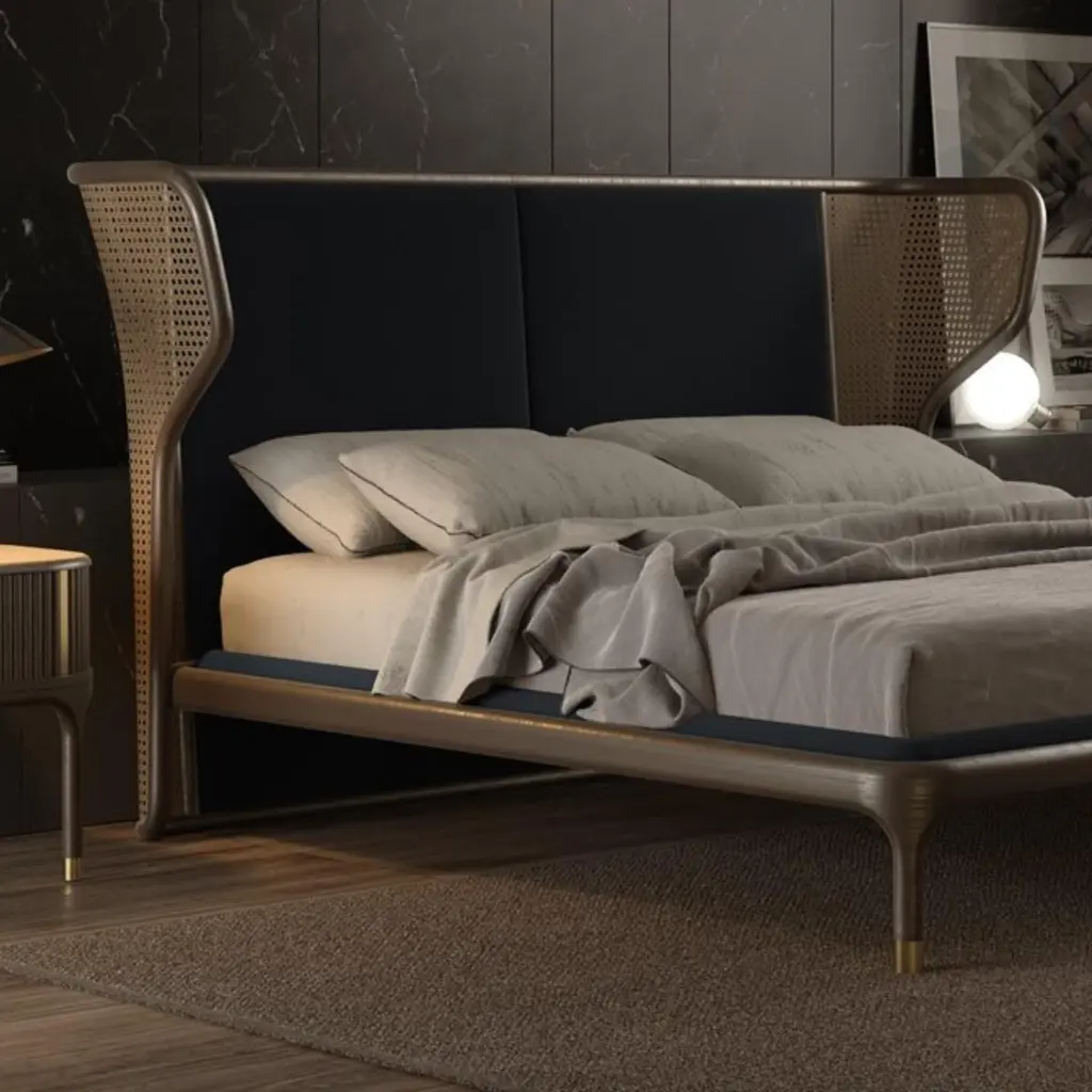 Joyce Bed By Morelato, Solid Ash Wood And Straw, Upholstered Headboard