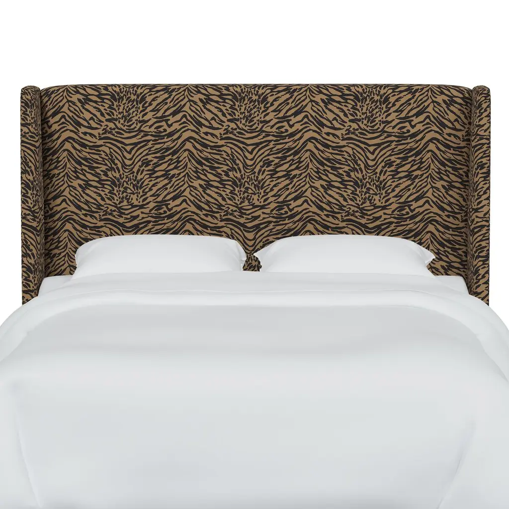 Exclusive to One Kings Lane: Tiger-print upholstery brings timeless glamour to this wingback headboard. Generous padding ensures comfortable support when reading or watching TV in bed. Made in the USA, the headboard has metal legs that easily attach to any standard bed frame.