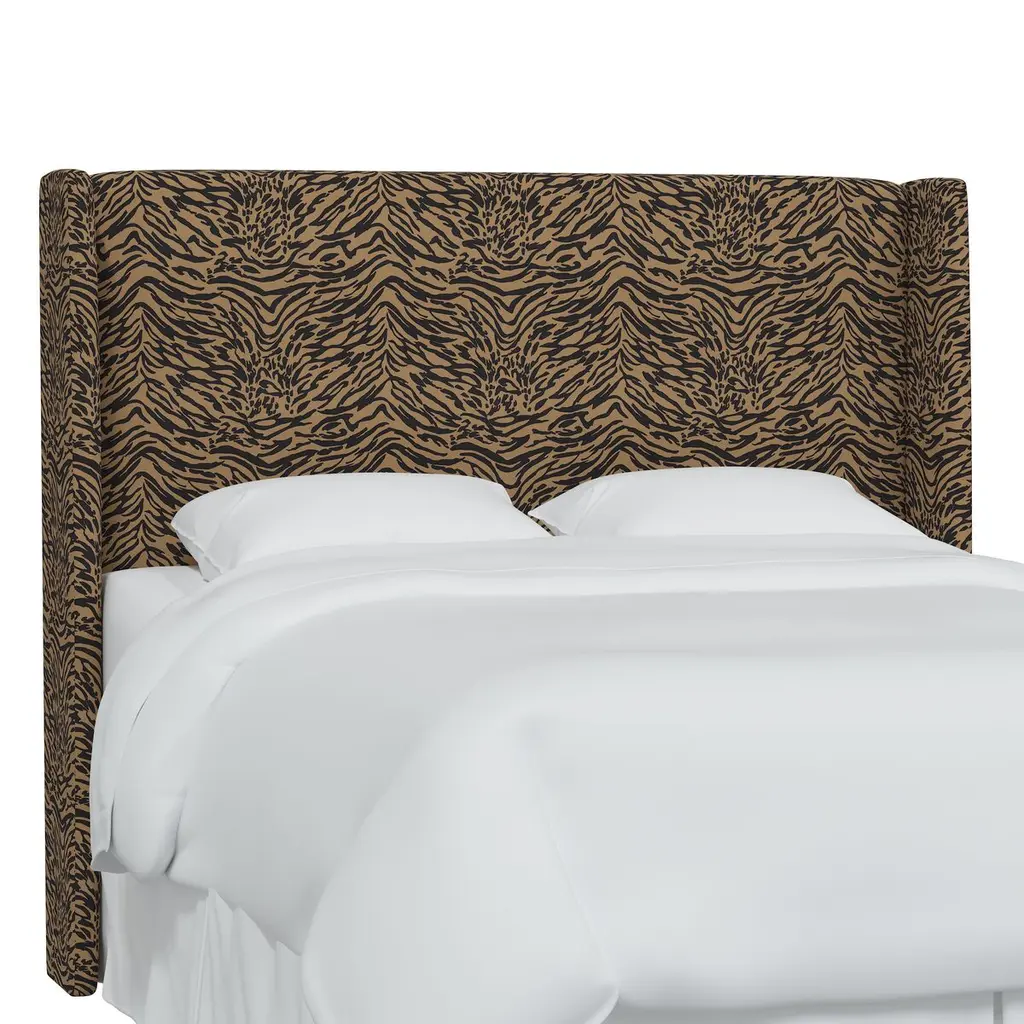 Exclusive to One Kings Lane: Tiger-print upholstery brings timeless glamour to this wingback headboard. Generous padding ensures comfortable support when reading or watching TV in bed. Made in the USA, the headboard has metal legs that easily attach to any standard bed frame.