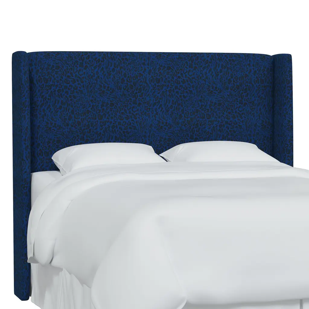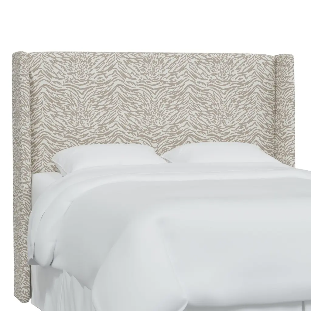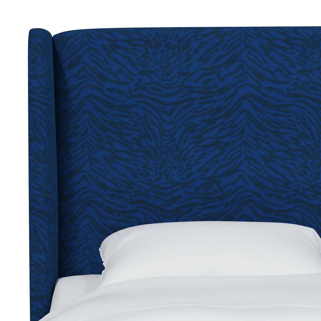 Exclusive to One Kings Lane: Tiger-print upholstery brings timeless glamour to this wingback headboard. Generous padding ensures comfortable support when reading or watching TV in bed. Made in the USA, the headboard has metal legs that easily attach to any standard bed frame.