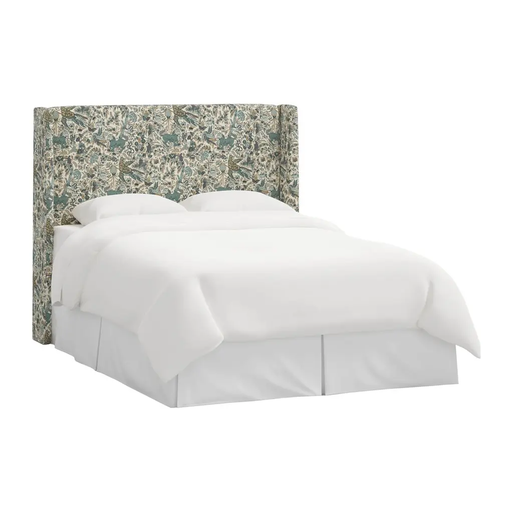 This square top headboard features a gentle curved wingback design alongside a plain front. These elements blend perfectly to lend a touch of style and create a piece that will be the center of your bedroom design. The made-to-order headboard matches up easily with any standard bed frame, making assembly simple, and the inclusive transitional design makes it an easy addition to any bedroom space. Fully hand upholstered, the headboard is made with a unique Bali Lion upholstery print.