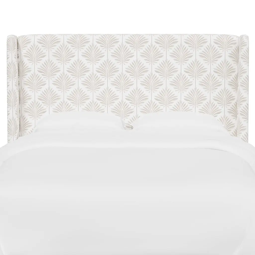 Exclusive to One Kings Lane and made in the USA: The graceful fanlike leaves of the cerifera palm inspired the upholstery of this equally graceful wingback headboard. Generous cushioning provides comfort and support while you're reading or watching TV.