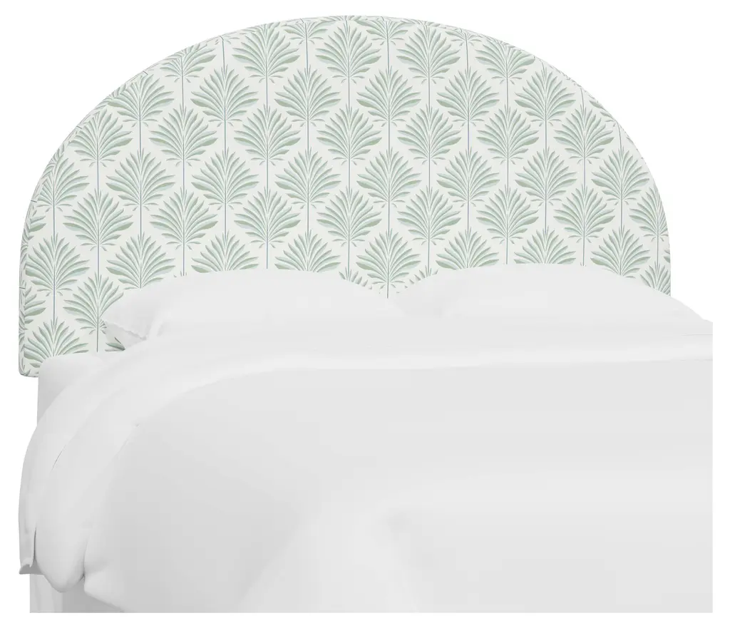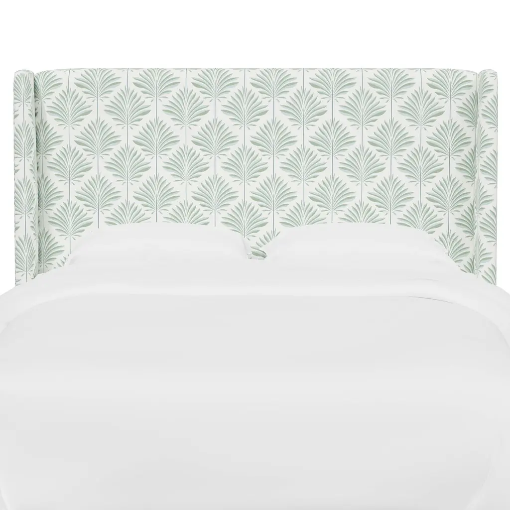 Exclusive to One Kings Lane and made in the USA: The graceful fanlike leaves of the cerifera palm inspired the upholstery of this equally graceful wingback headboard. Generous cushioning provides comfort and support while you're reading or watching TV.