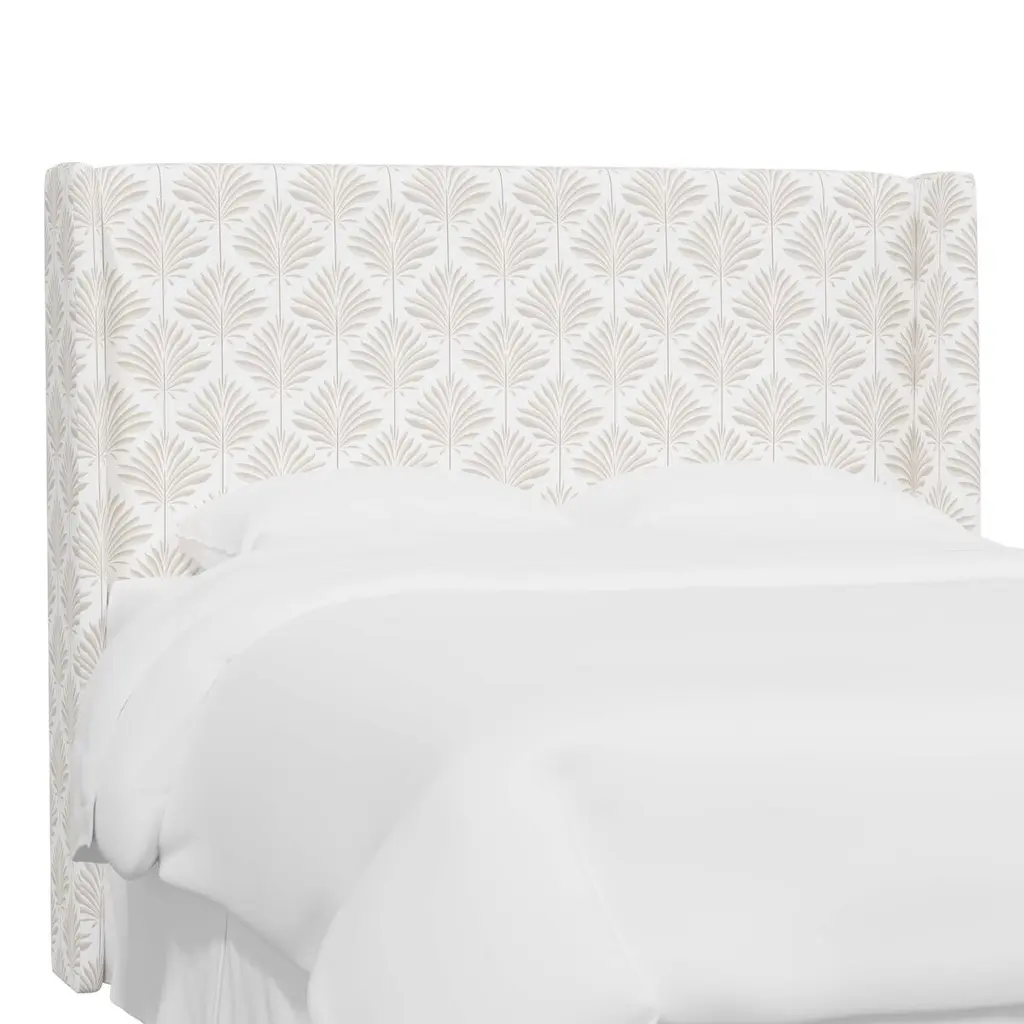 Exclusive to One Kings Lane and made in the USA: The graceful fanlike leaves of the cerifera palm inspired the upholstery of this equally graceful wingback headboard. Generous cushioning provides comfort and support while you're reading or watching TV.