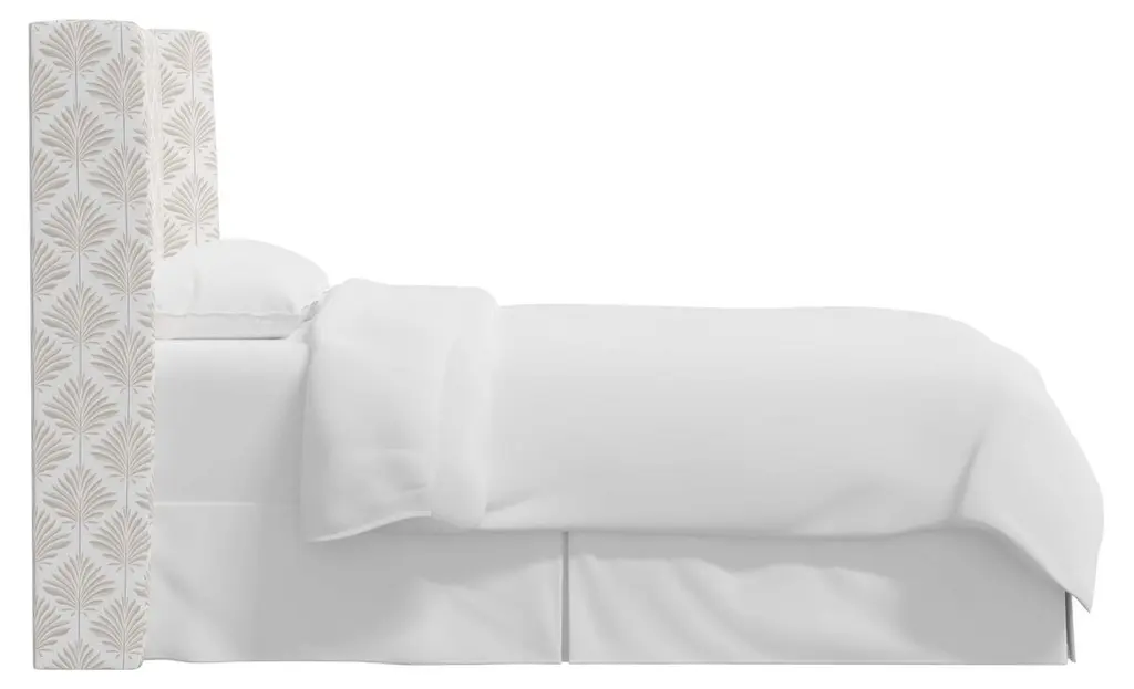 Exclusive to One Kings Lane and made in the USA: The graceful fanlike leaves of the cerifera palm inspired the upholstery of this equally graceful wingback headboard. Generous cushioning provides comfort and support while you're reading or watching TV.