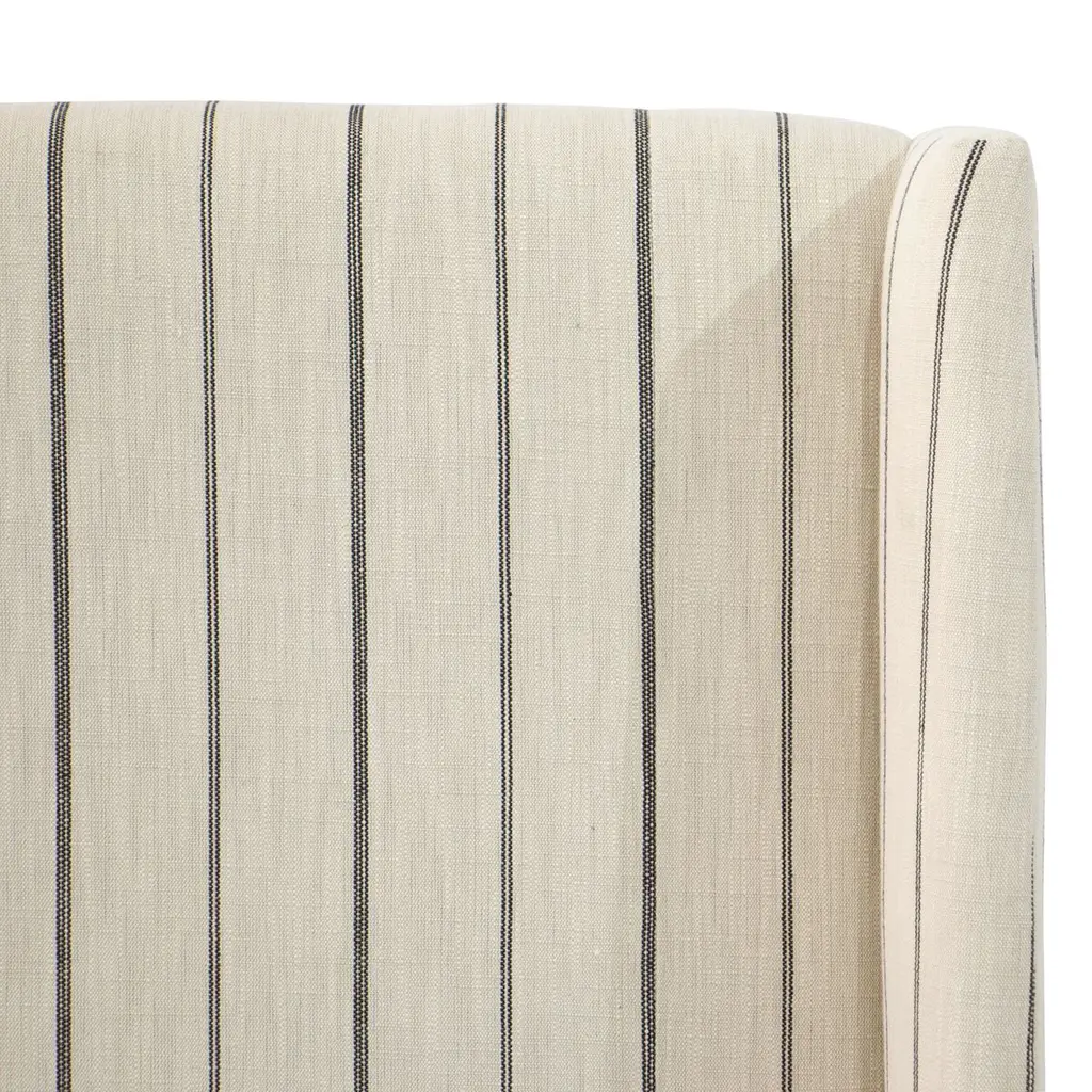 Exclusive to One Kings Lane: This clean-lined headboard is crafted of pine with a wingback silhouette and striped linen-and-cotton upholstery in versatile neutrals. Generous padding ensures long-lasting comfort and support while sitting up to read or watch TV. Attaches to any standard bed frame. Handcrafted in the USA.Cloth & Company offers a fresh approach to customizable furniture and decor, digitally printing fabrics on demand in its Chicago factory. At the heart of this female-led enterprise is a fourth-generation family business that has been fashioning on-trend upholstery since it was founded in 1946. Cloth & Company blends modern technology with traditional craftsmanship to create this collection of made-to-order pieces exclusively for One Kings Lane.