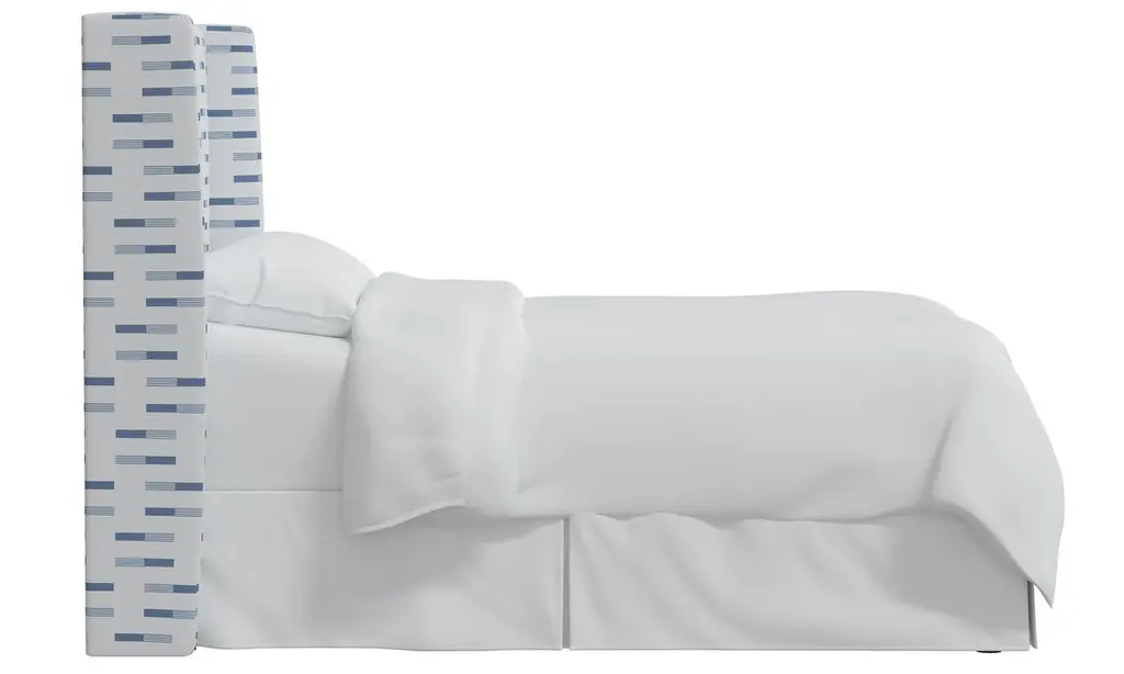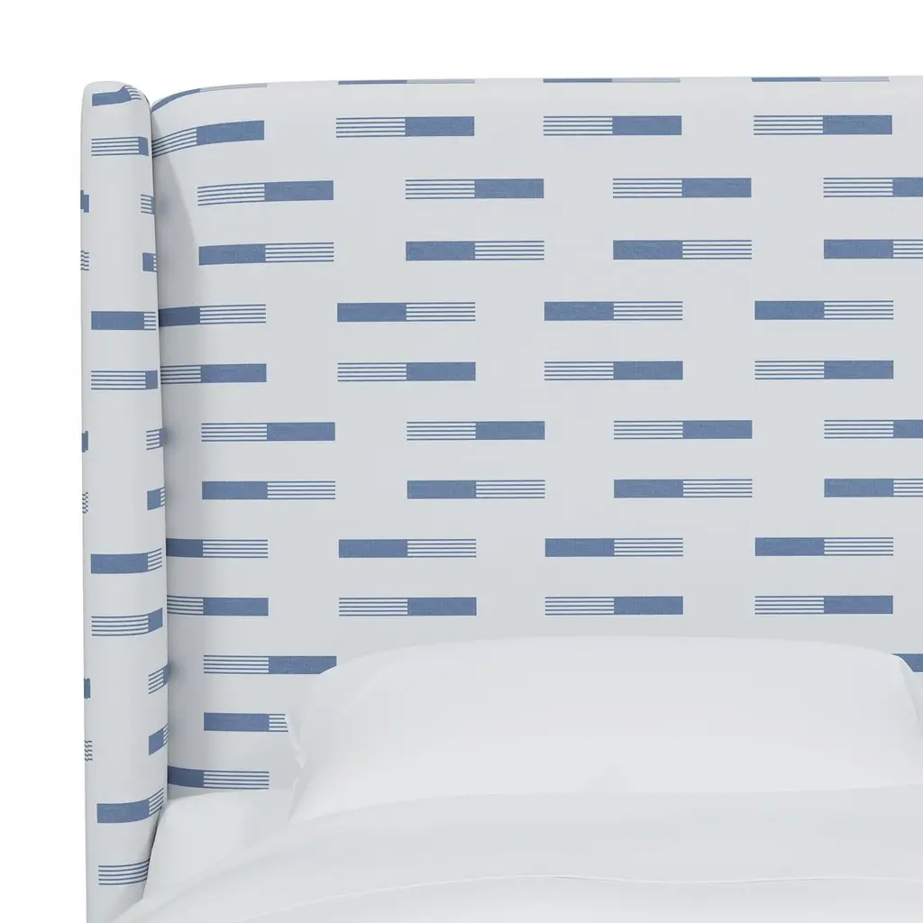 Exclusive to One Kings Lane: Upholstery inspired by Mid-Century Modern motifs adds retro chic to this wingback headboard. Generous padding makes it an ideal choice for anyone who likes sitting up to read or watch TV in bed.