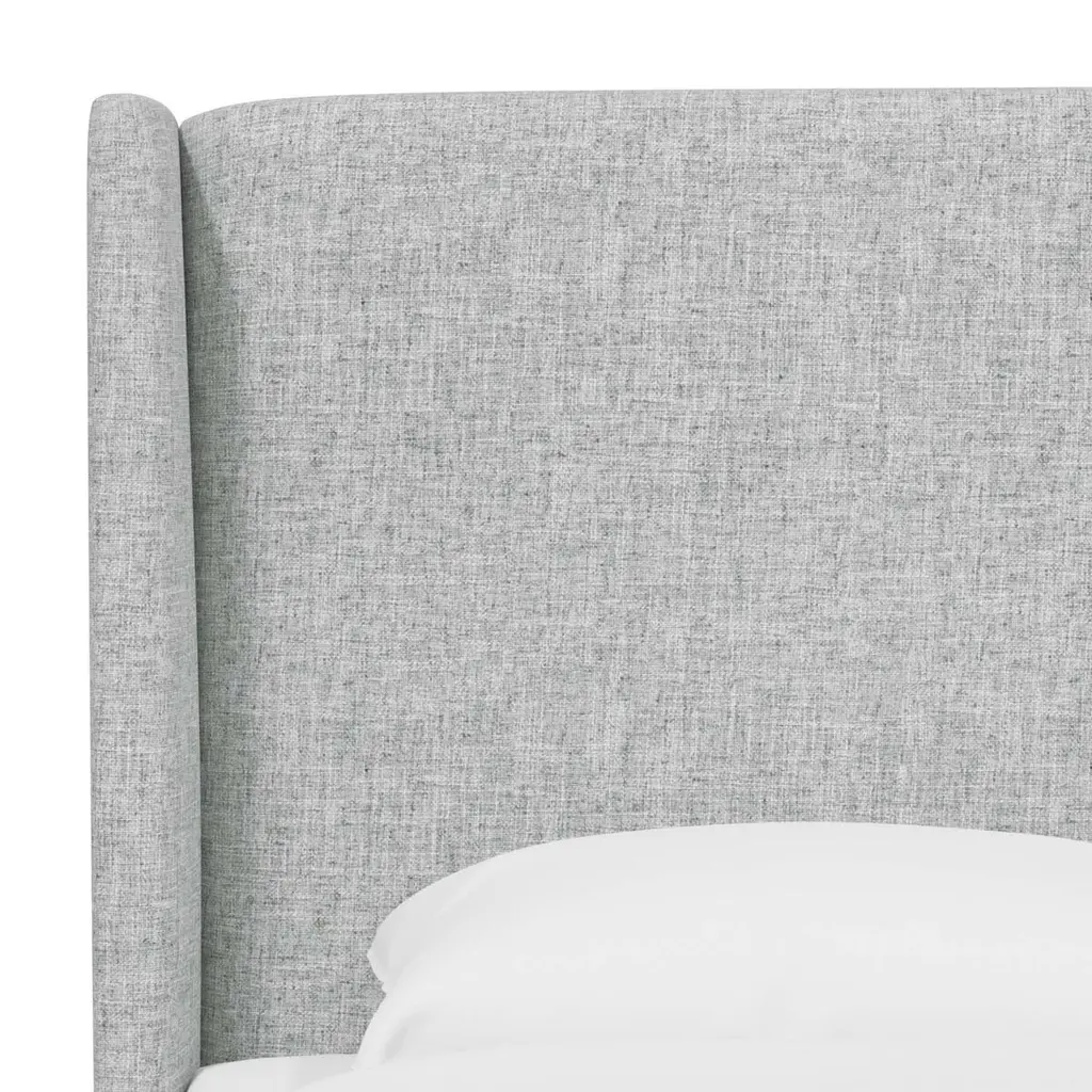 The tweedlike appearance of the linen-blend upholstery adds to this wingback headboard's timeless elegance. Ample cushioning makes it a pleasure to lean against while reading or watching TV. Made in the USA, the easy-to-assemble headboard has metal legs that attach to any standard bed frame.