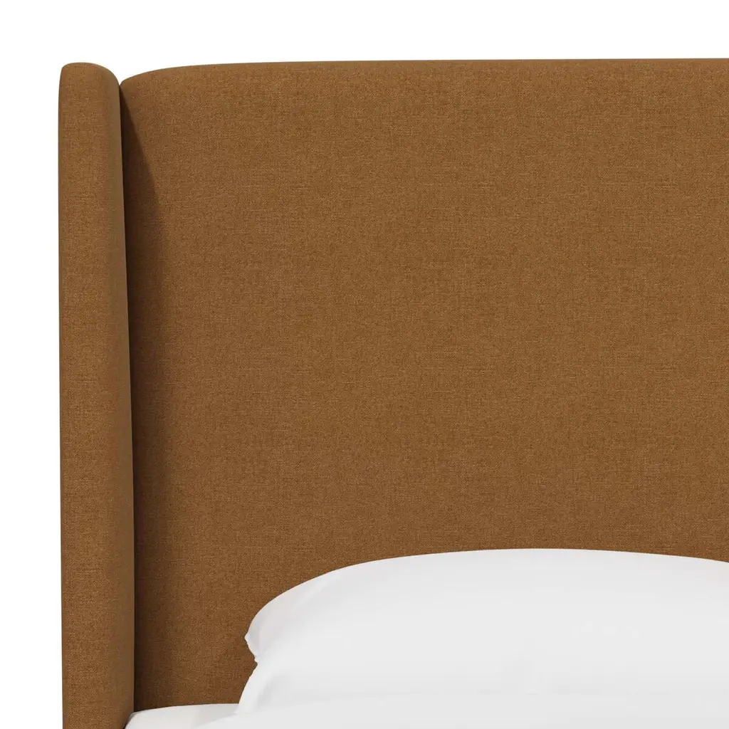 The tweedlike appearance of the linen-blend upholstery adds to this wingback headboard's timeless elegance. Ample cushioning makes it a pleasure to lean against while reading or watching TV. Made in the USA, the easy-to-assemble headboard has metal legs that attach to any standard bed frame.
