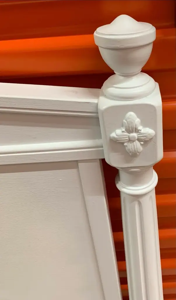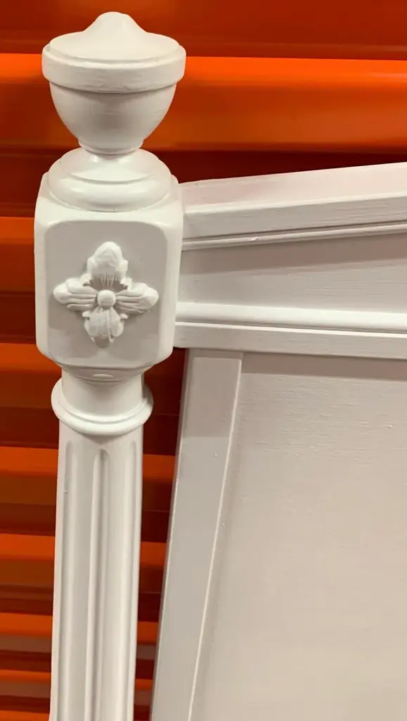 This is a beautiful vintage French style twin headboard by Kindel. Solid and sturdy. This has been repainted. Accepts a standard bed frame. Also selling two more exact match’s separately. Dimensions: - 38.75 Width - 39 Height I have the matching nightstands and the desk also listed.