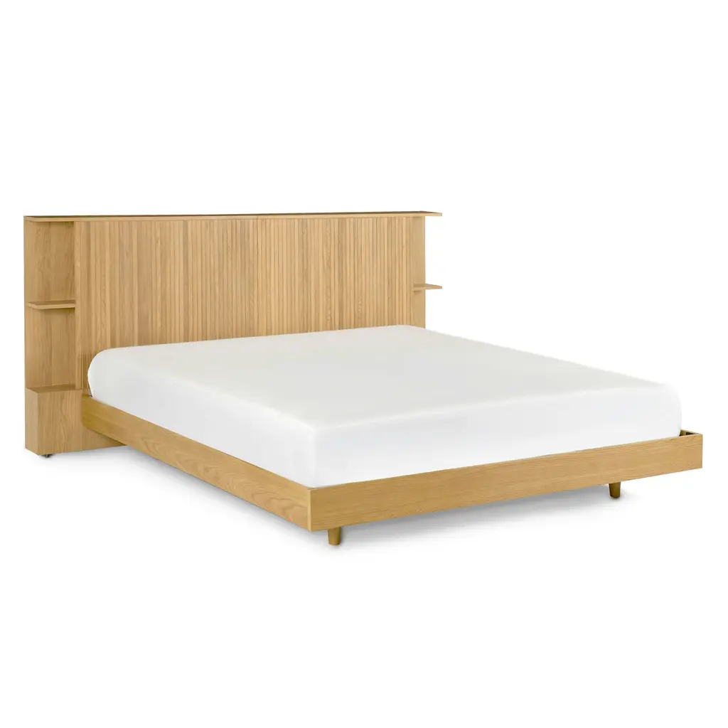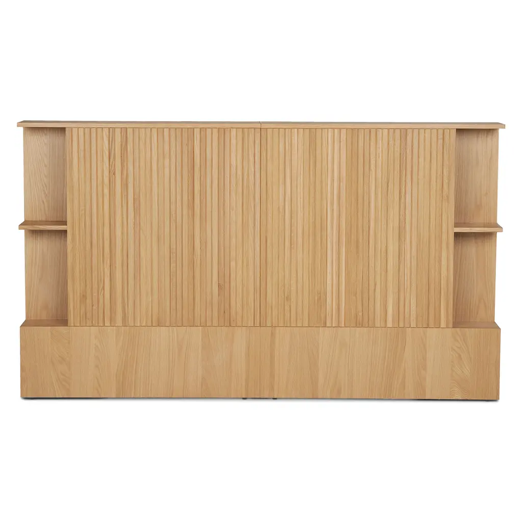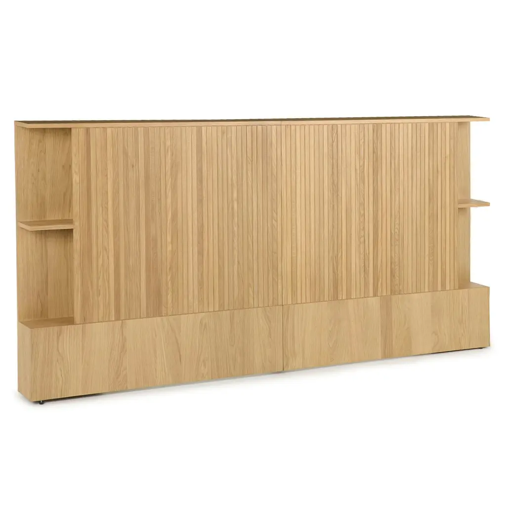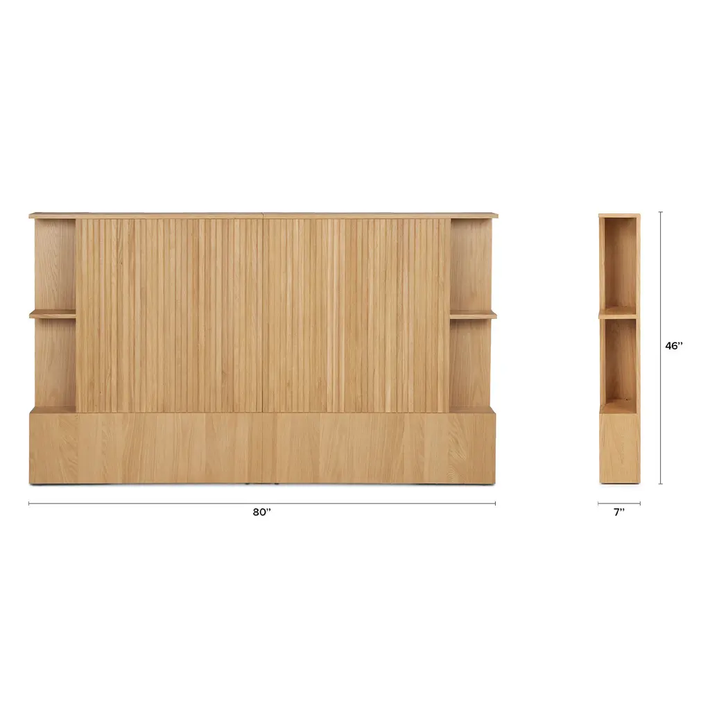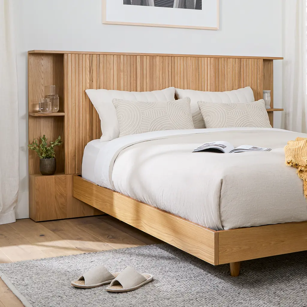 With its solid oak tambour and modern open-concept shelving, the Kouva Headboard is a spacious new home for your alarm clock, dangly vine plant, the three-day-old water glass you should probably rinse out, and so much more.