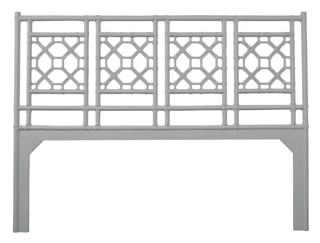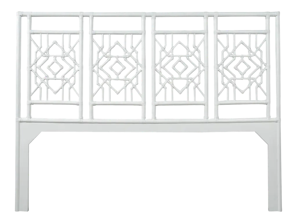This headboard features classic Rattan design in a geometric pattern. Constructed of solid rattan and hand bound with rawhide bindings. This headboard can be attached to any standard bed frame or hung on the wall. Each headboard is hand finished in the USA and made to order, please allow time for delivery.