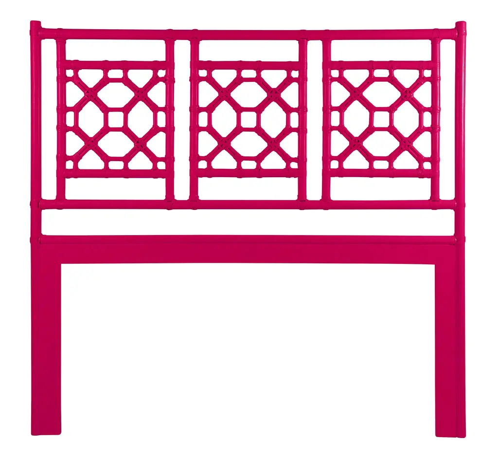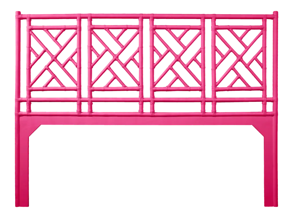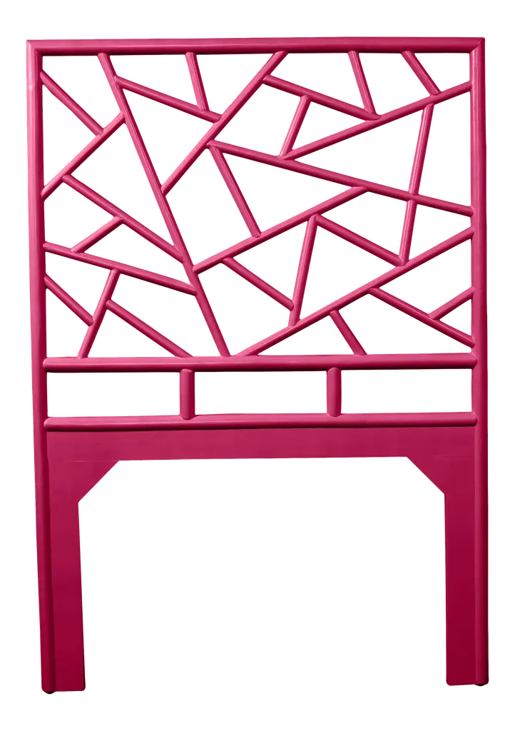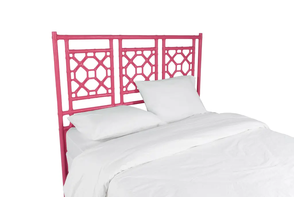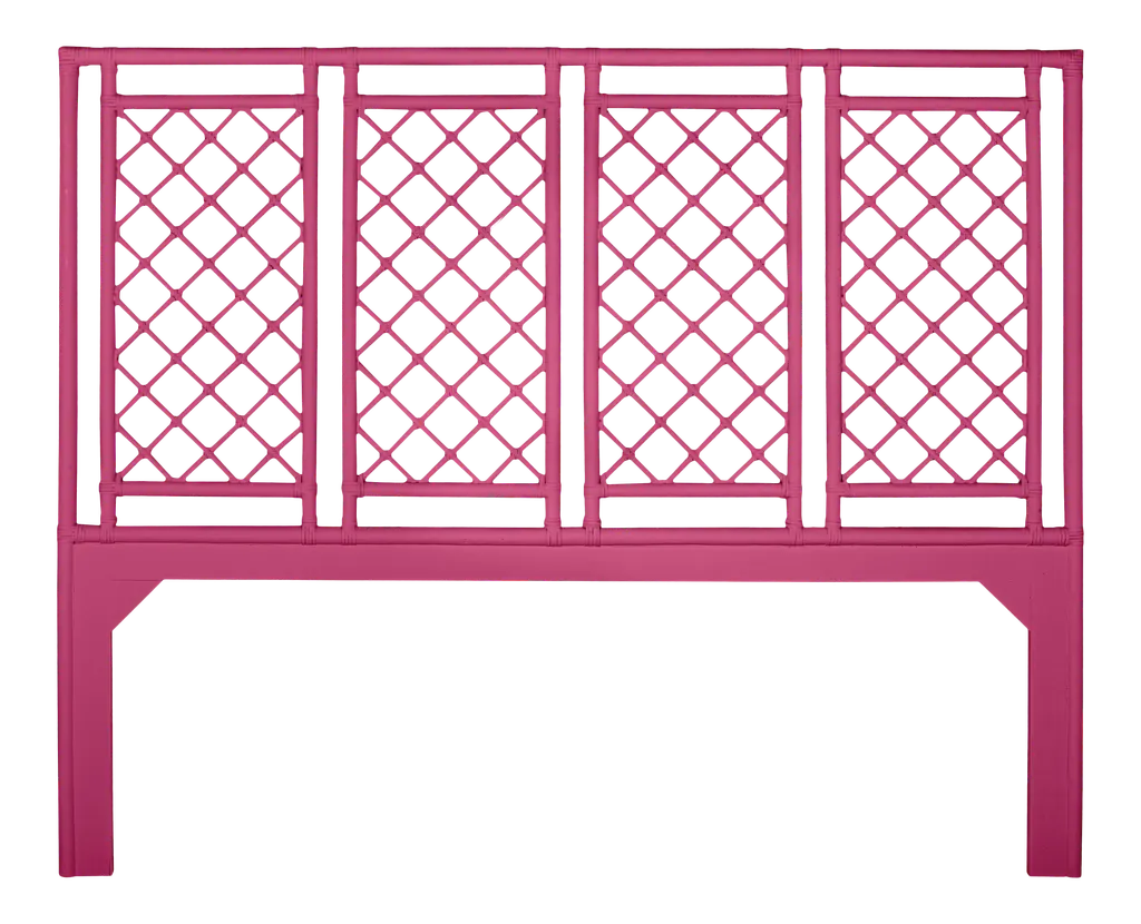 This headboard features classic Rattan design in a geometric pattern. Constructed of solid rattan and hand bound with rawhide bindings. This headboard can be attached to any standard bed frame or hung on the wall. Each headboard is hand finished in the USA and made to order, please allow time for delivery.