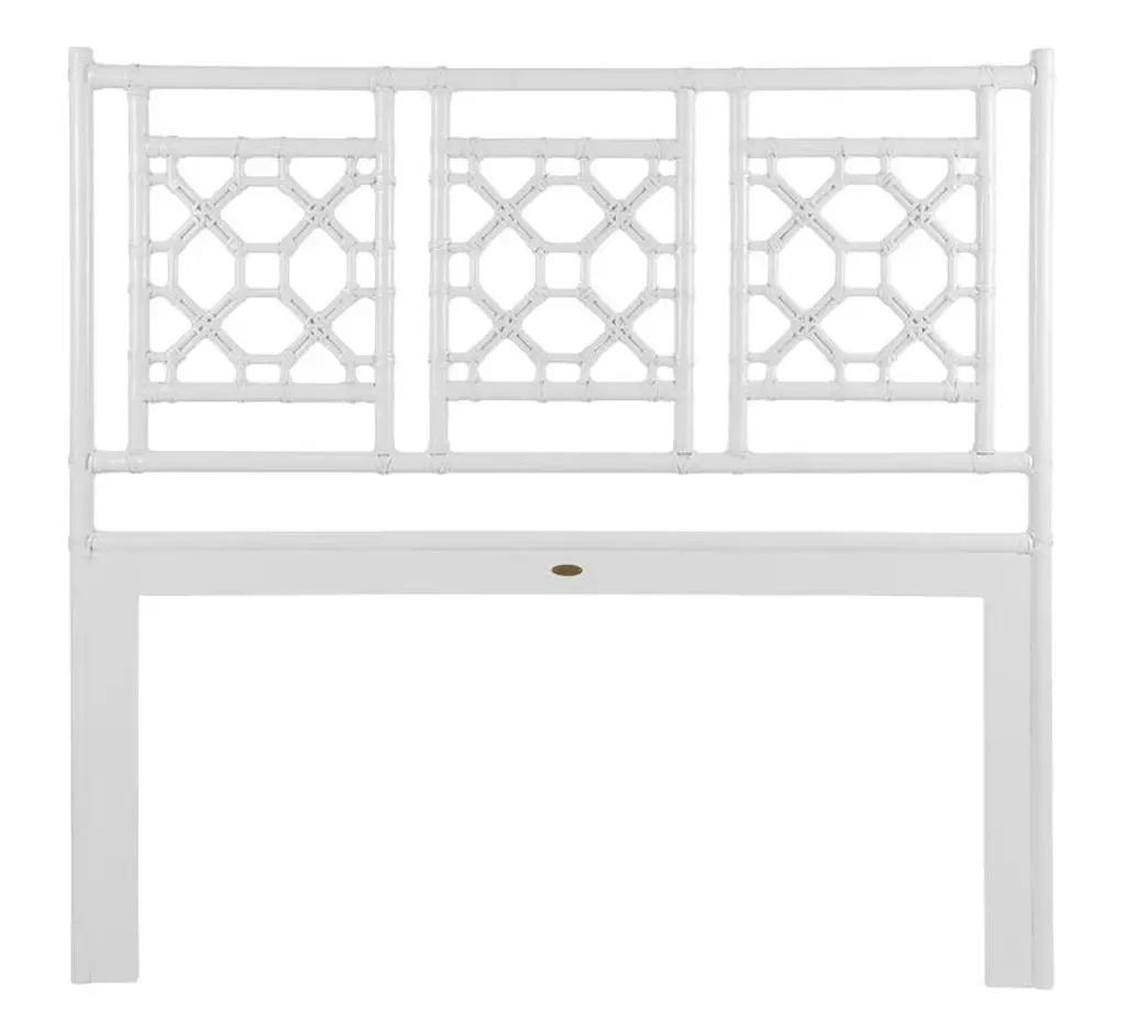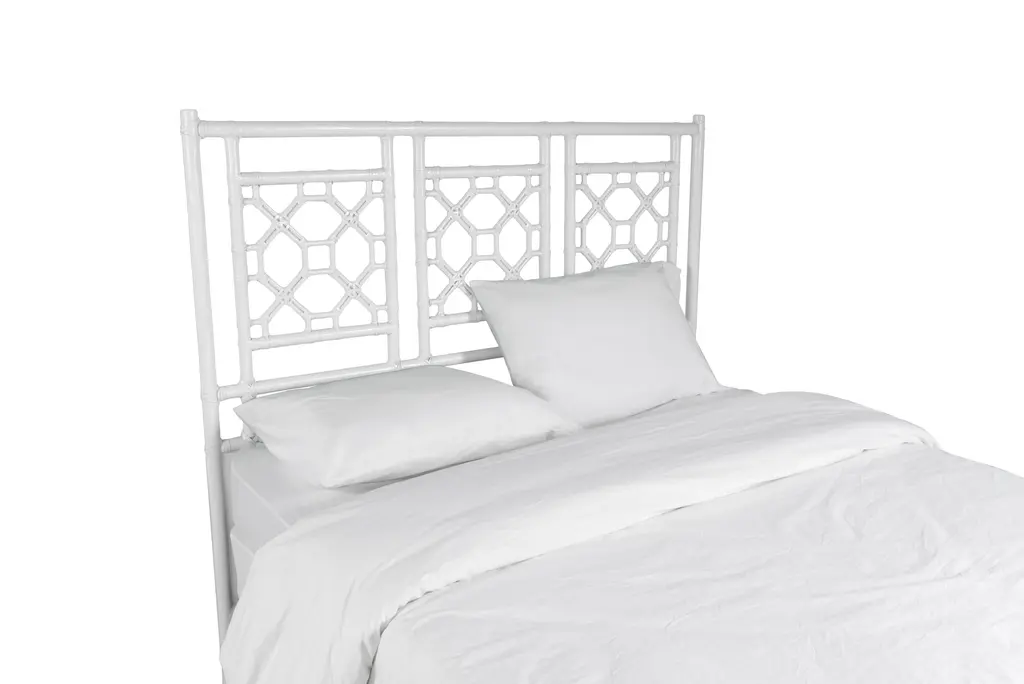 This headboard features classic Rattan design in a geometric pattern. Constructed of solid rattan and hand bound with rawhide bindings. This headboard can be attached to any standard bed frame or hung on the wall. Each headboard is hand finished in the USA and made to order, please allow time for delivery.