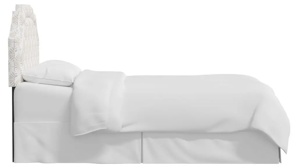 Exclusive to One Kings Lane: The graceful fanlike leaves of the cerifera palm inspired the fabric covering this equally graceful headboard. Made in the USA, the headboard is well cushioned for long-lasting comfort and support.