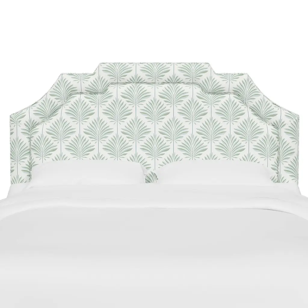 Exclusive to One Kings Lane: The graceful fanlike leaves of the cerifera palm inspired the fabric covering this equally graceful headboard. Made in the USA, the headboard is well cushioned for long-lasting comfort and support.