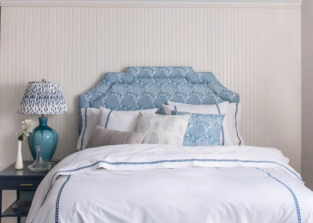 Featuring fabric by Cloth & Co. exclusive to One Kings Lane: Clean, angular lines and neatly tailored upholstery give this headboard a modern elegance; foam-and-fiber padding ensures long-lasting comfort and support. This easy-to-assemble headboard has metal legs which attach to any standard bed frame. Handcrafted in the USA.