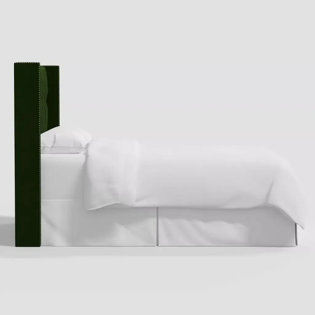 Upgrade your bedroom or guest room bed with this Louis Wingback Headboard from Threshold™. Crafted from pinewood material, the headboard strikes a rectangular silhouette wrapped in luxe velvet tufted upholstery with nailhead trim, while soft padding provides added softness and comfort. Simply pair with any bed frame, box spring, mattress and bedding set of your choice to enhance the look of your bedroom. Threshold™: Looks like home, feels like you.
