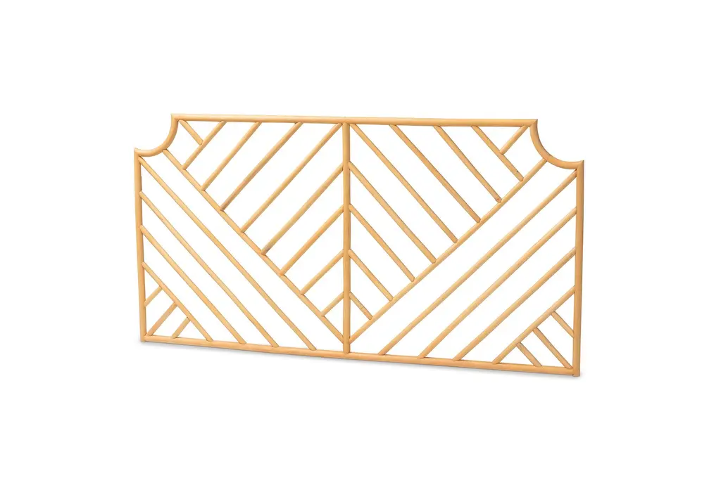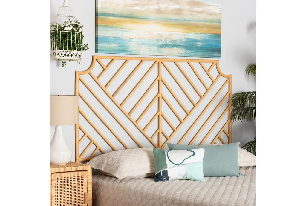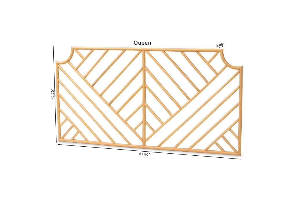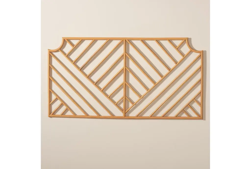 Lynda Queen Natural Brown Beige Wood Rattan Wall Mount Headboard