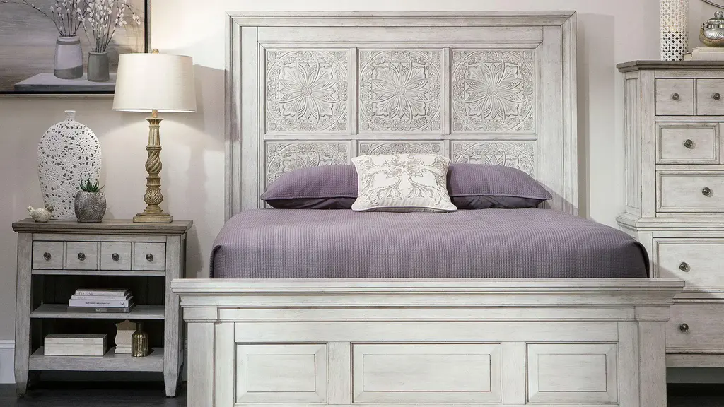 Enjoy the simple life with the Magnolia Park Panel Headboard. This piece has a stunning heirloom quality with its decorative carvings. With this headboard as your focal point, you'll fall in love with the look and feel of your bedroom.