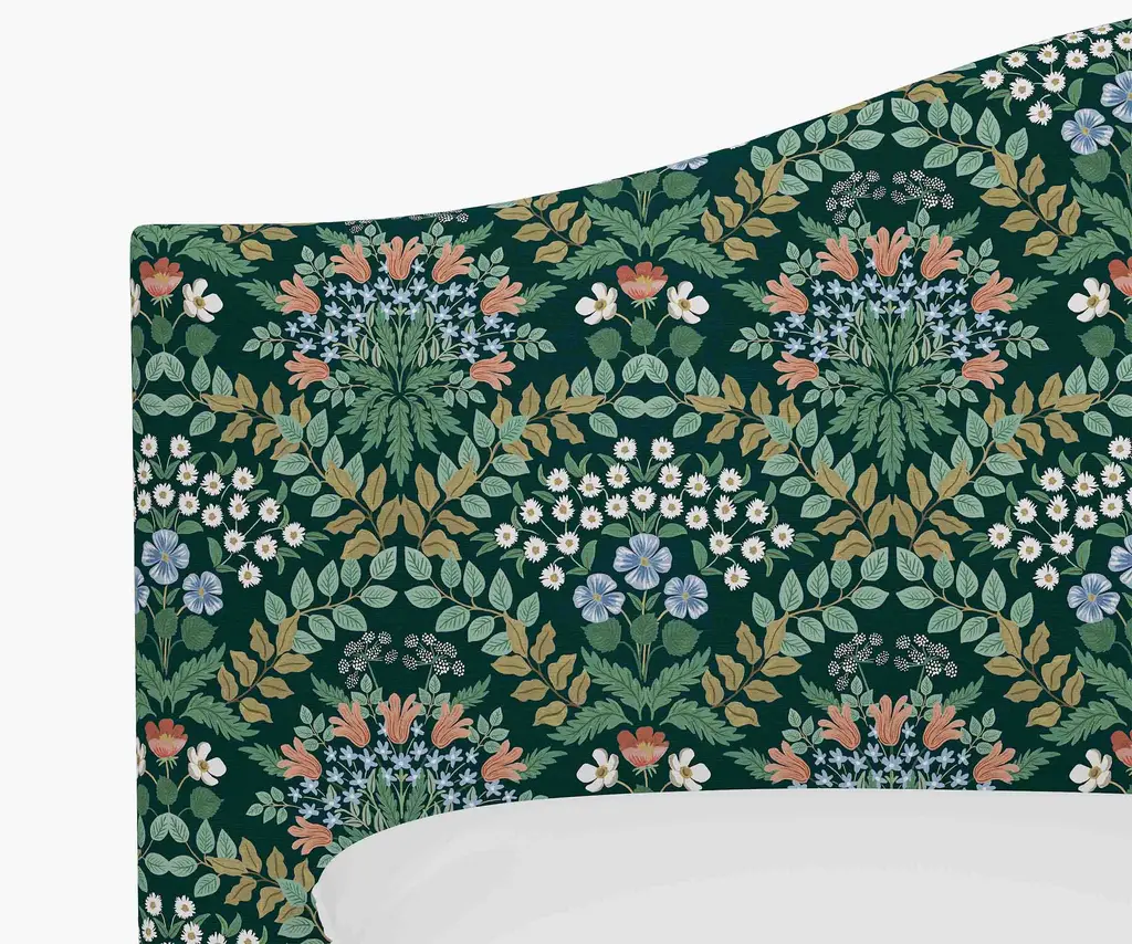 A headboard with classic curved lines, designed to mount to your existing bed frame. Select from 17 illustrated fabrics for your made-to-order piece, crafted in Chicago by Cloth & Company.