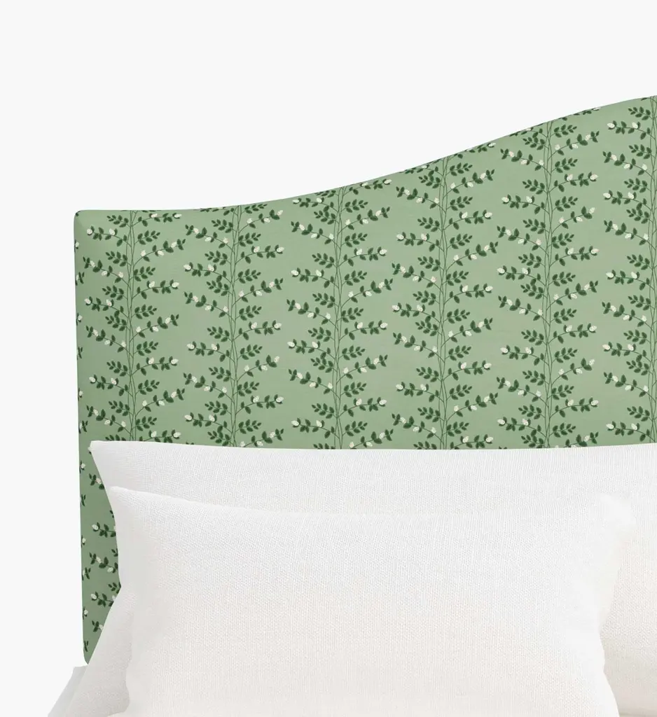 A headboard with classic curved lines, designed to mount to your existing bed frame. Select from 17 illustrated fabrics for your made-to-order piece, crafted in Chicago by Cloth & Company.