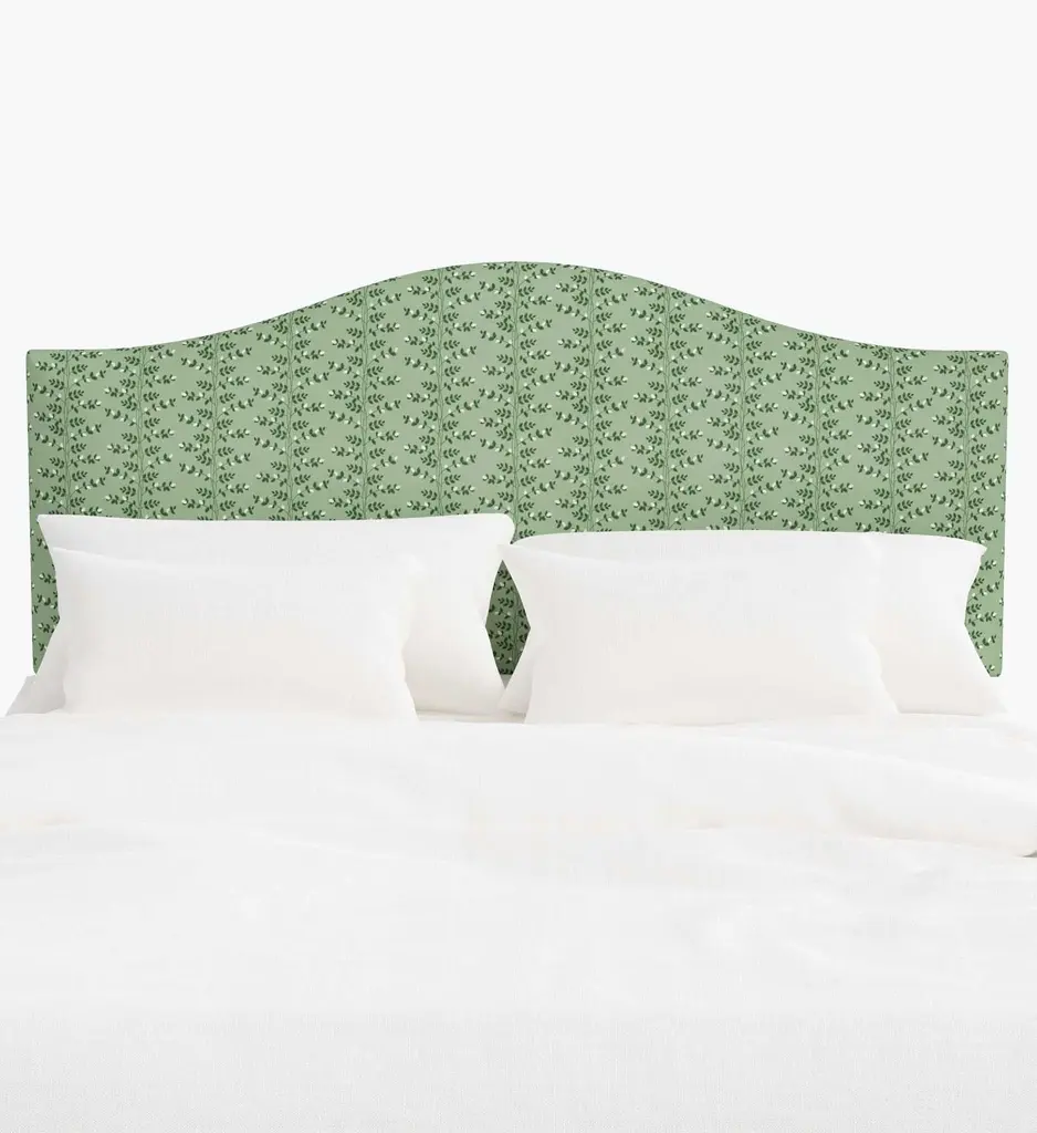 A headboard with classic curved lines, designed to mount to your existing bed frame. Select from 17 illustrated fabrics for your made-to-order piece, crafted in Chicago by Cloth & Company.
