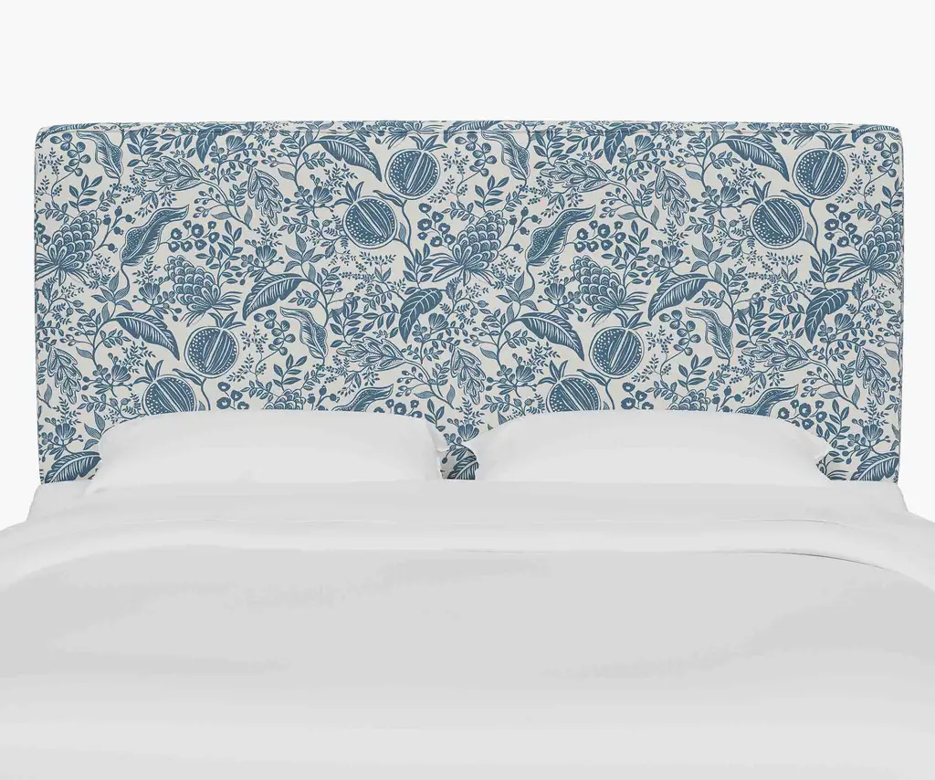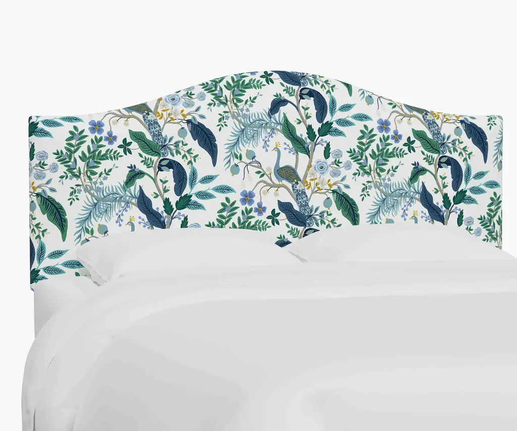 A headboard with classic curved lines, designed to mount to your existing bed frame. Select from 17 illustrated fabrics for your made-to-order piece, crafted in Chicago by Cloth & Company.