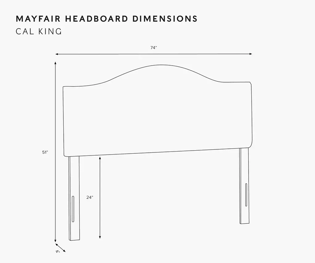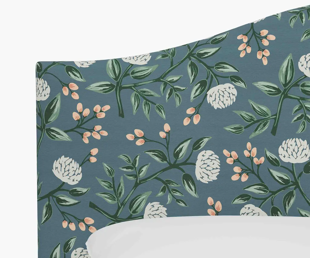 A headboard with classic curved lines, designed to mount to your existing bed frame. Select from 17 illustrated fabrics for your made-to-order piece, crafted in Chicago by Cloth & Company.