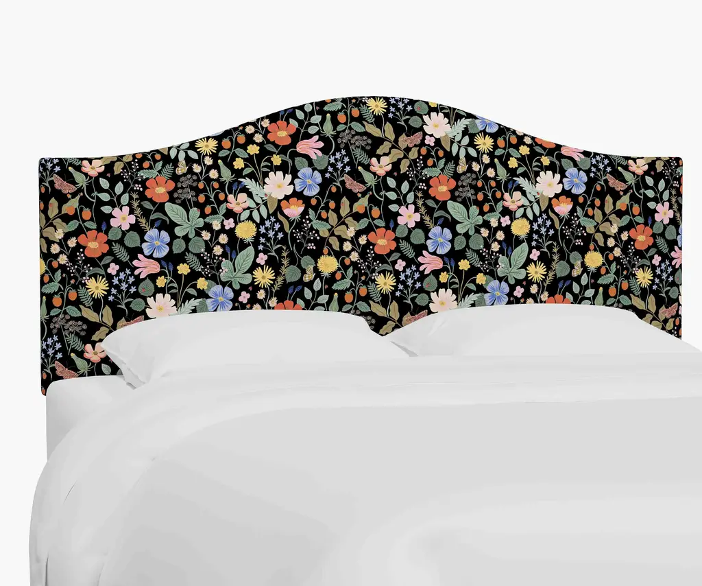 A headboard with classic curved lines, designed to mount to your existing bed frame. Select from 17 illustrated fabrics for your made-to-order piece, crafted in Chicago by Cloth & Company.