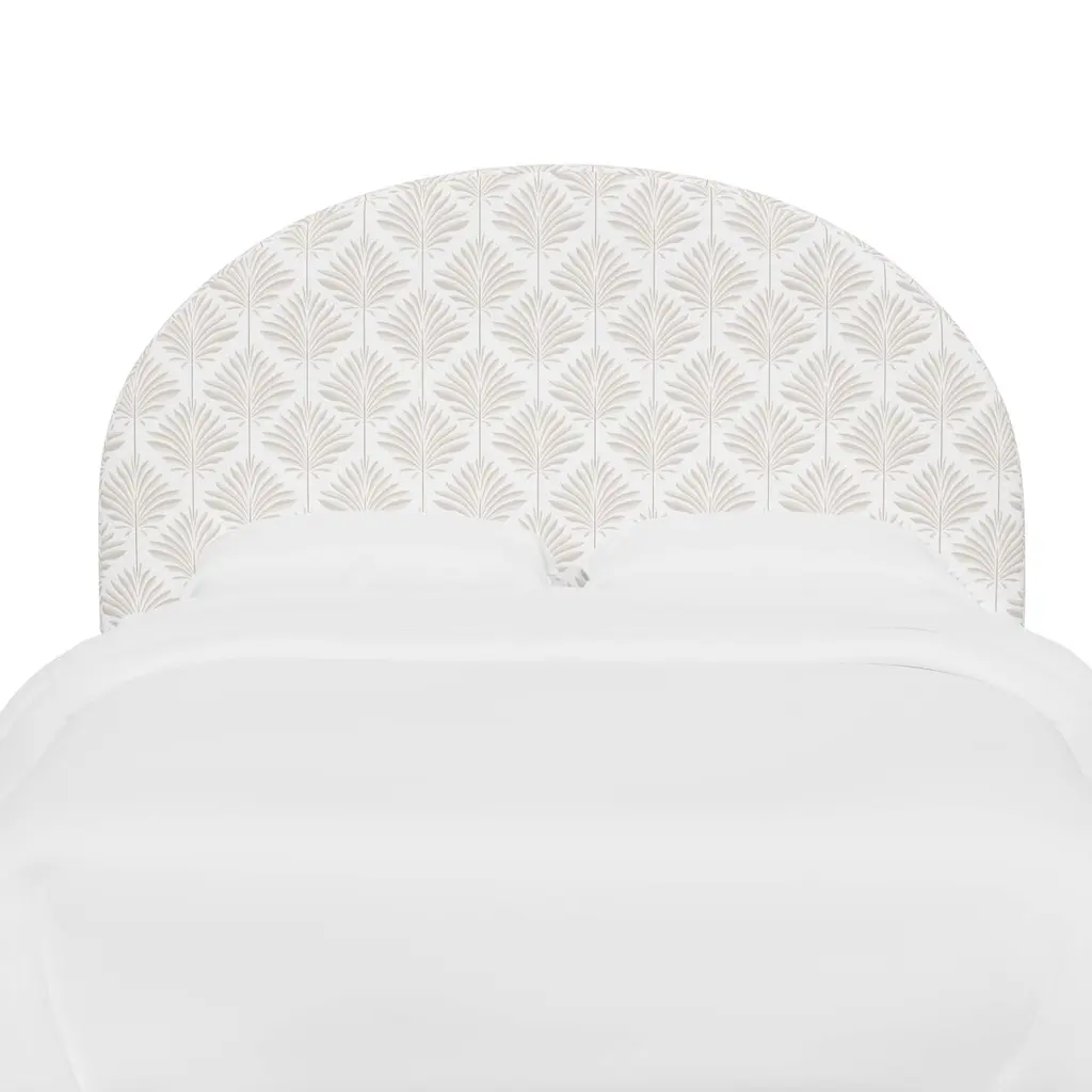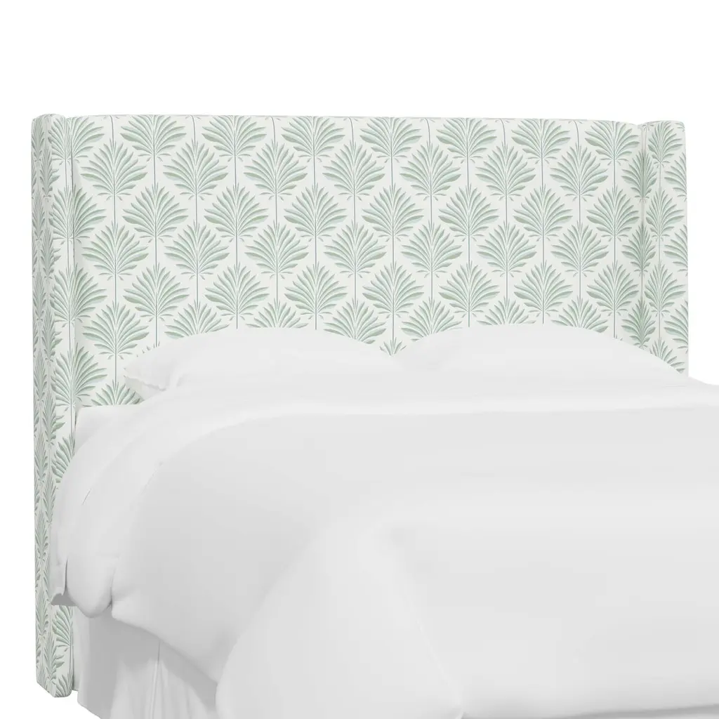 Exclusive to One Kings Lane: The graceful fanlike leaves of the cerifera palm inspired the fabric covering this equally graceful headboard. Made in the USA, the comfortably padded headboard is ideal for leaning against while you're reading or watching TV.