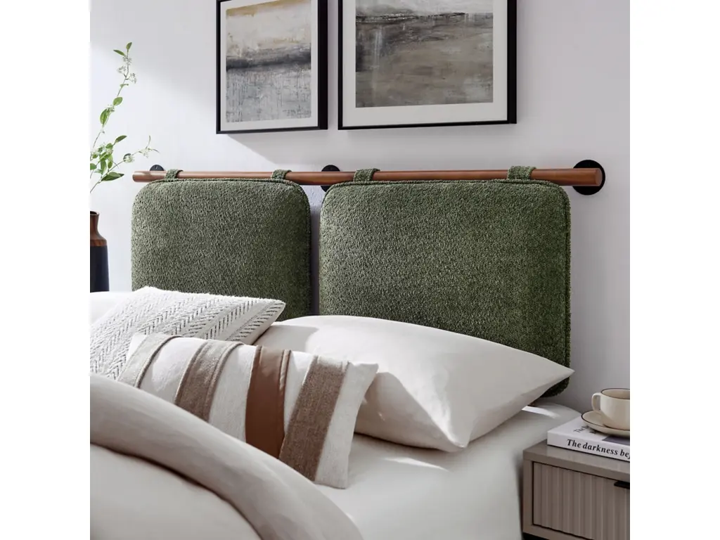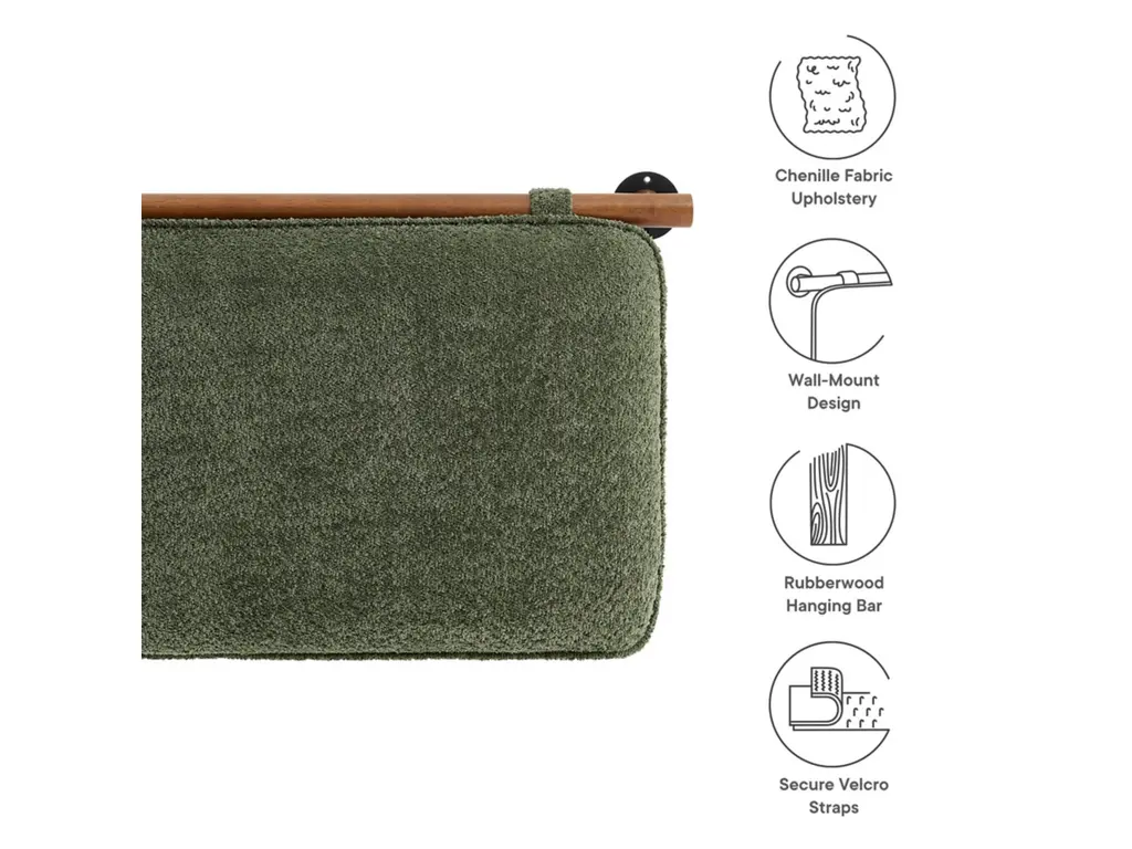 Create a soothing, inviting atmosphere with the Anela Chenille Upholstered Queen Size Headboard, featuring two separate cushions that offer both comfort and style in a space-saving wall-mounted design. Crafted with soft chenille fabric, these headboard pillows are anchored by a solid rubberwood bar, allowing them to float effortlessly above a queen size bed while ensuring stability and bringing a touch of natural texture to the design. For added security, upholstered velcro straps wrap around the wooden bar and fasten to the back of each headboard cushion, providing a snug fit while blending with the chenille fabric for a cohesive, minimalist look. Ideal for guest rooms, dorm rooms, or shared spaces, these floating headboard cushions create a cozy backdrop perfect for sitting up and reading, watching TV, or simply relaxing in bed. They can also be repurposed as comfortable back cushions for a wall bench, offering extra support and a stylish touch to small seating areas. With simple assembly required, this wall-mounted queen size headboard maximizes space while delivering comfort and elegance.