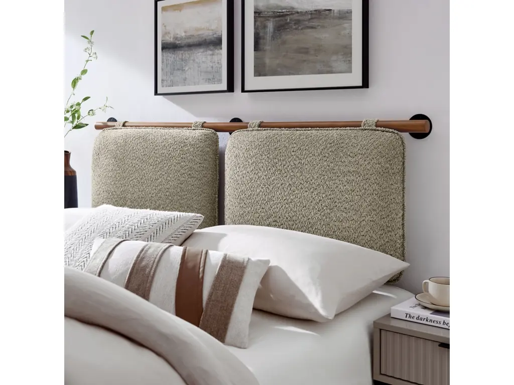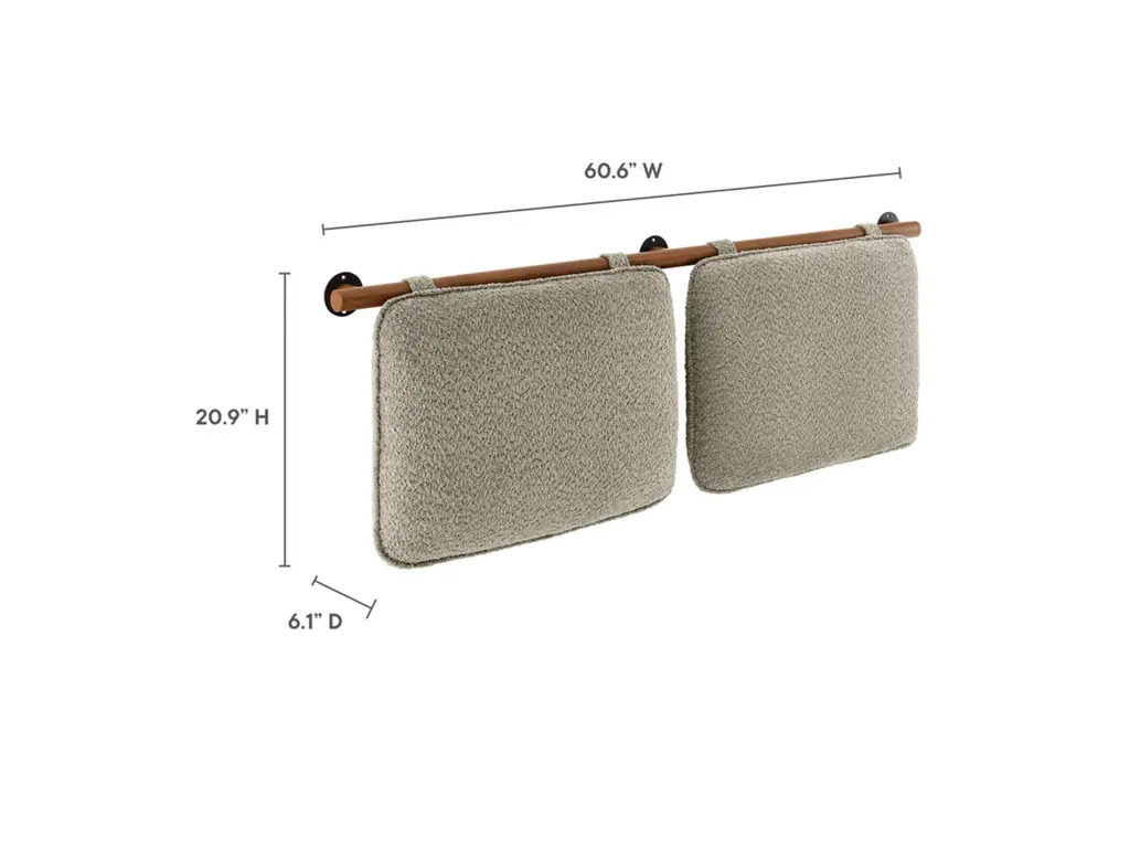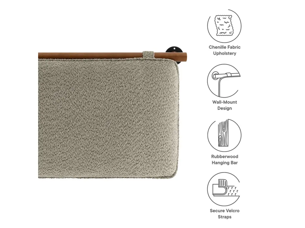 Create a soothing, inviting atmosphere with the Anela Chenille Upholstered Queen Size Headboard, featuring two separate cushions that offer both comfort and style in a space-saving wall-mounted design. Crafted with soft chenille fabric, these headboard pillows are anchored by a solid rubberwood bar, allowing them to float effortlessly above a queen size bed while ensuring stability and bringing a touch of natural texture to the design. For added security, upholstered velcro straps wrap around the wooden bar and fasten to the back of each headboard cushion, providing a snug fit while blending with the chenille fabric for a cohesive, minimalist look. Ideal for guest rooms, dorm rooms, or shared spaces, these floating headboard cushions create a cozy backdrop perfect for sitting up and reading, watching TV, or simply relaxing in bed. They can also be repurposed as comfortable back cushions for a wall bench, offering extra support and a stylish touch to small seating areas. With simple assembly required, this wall-mounted queen size headboard maximizes space while delivering comfort and elegance.