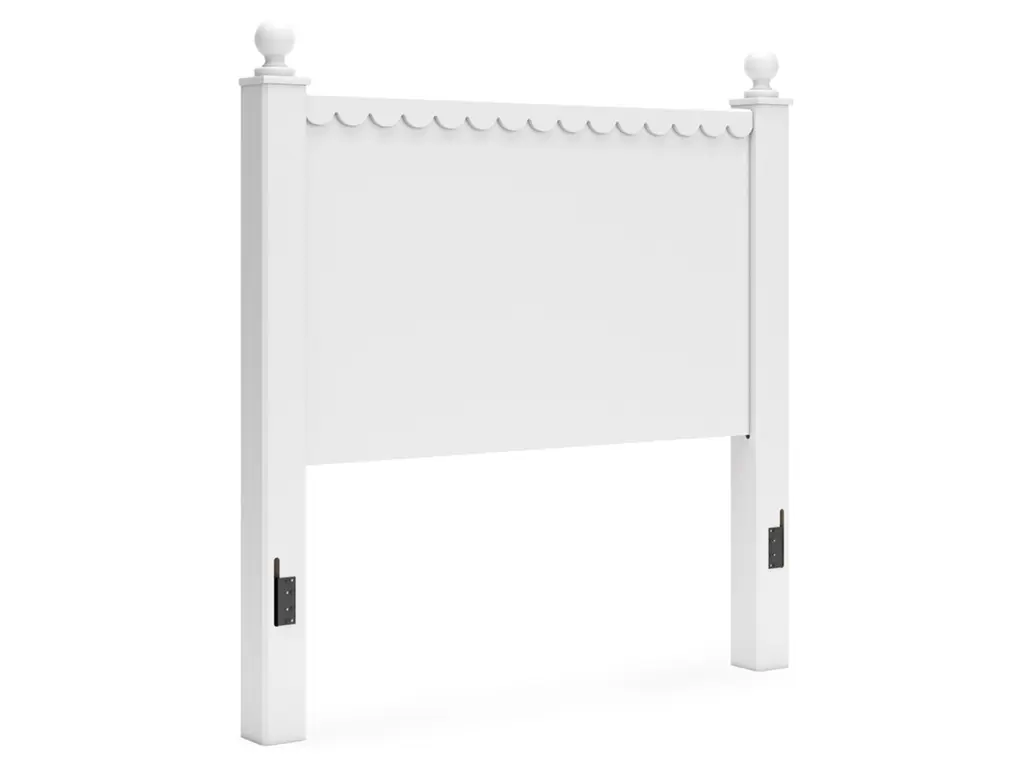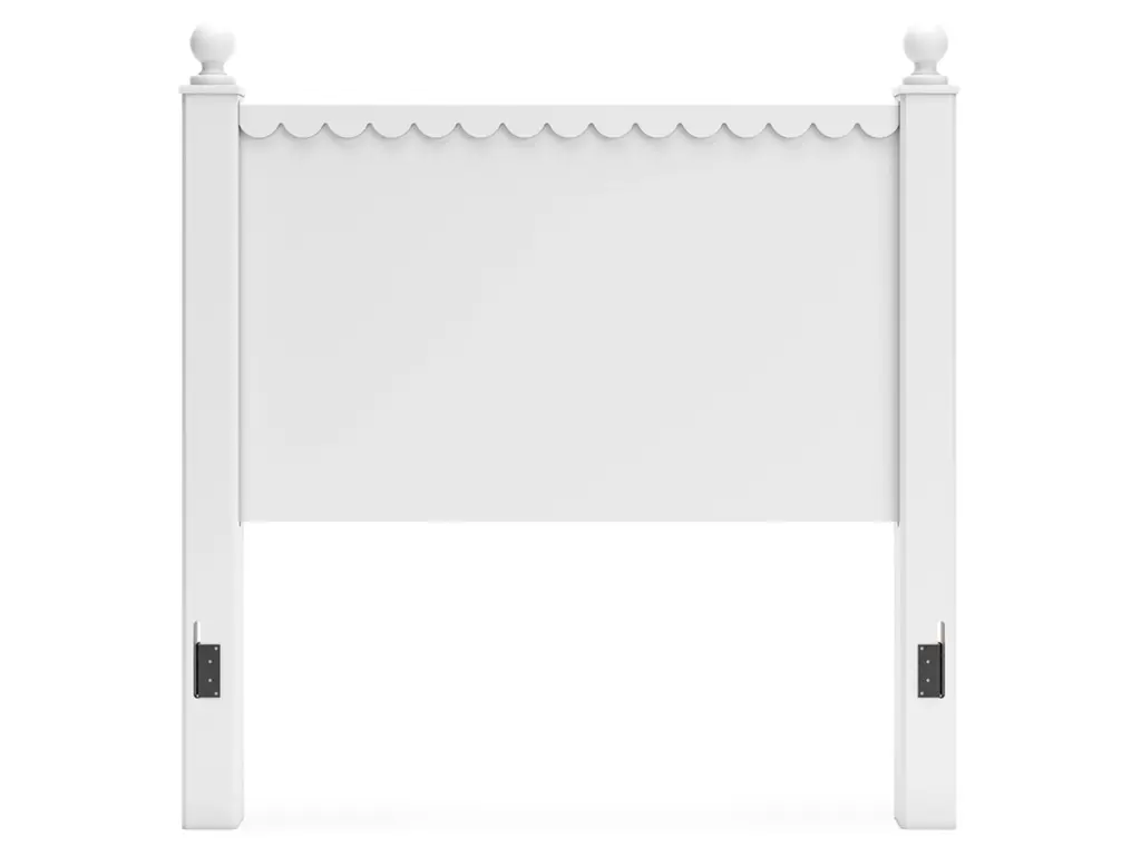 Make morning or bedtime that much more magical with the Mollviney full panel headboard. Charmingly cute with its scalloped detailing, it appeals to both her sense of playful whimsy and your love for modern design. And the headboard's crisp white finish gives you the versatility to pair it with existing decor.