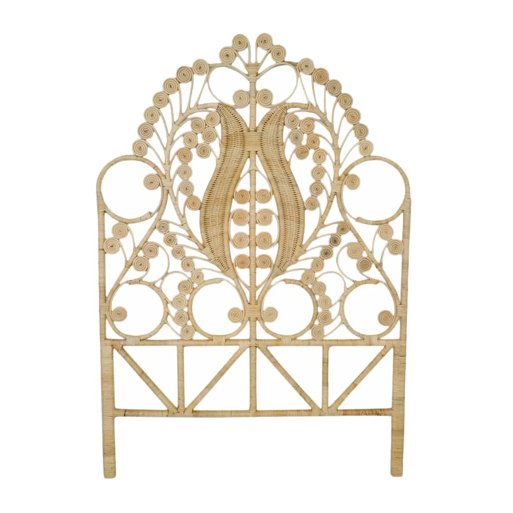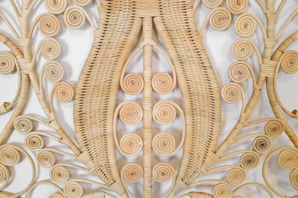 Natural wicker hand woven headboard in twin size. Intricate unique headboard which will add beauty and charm to any bedroom space. Each may have slight variations in natural tones/imperfections and handmade differences.