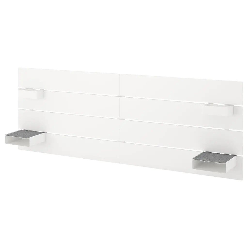 NORDLI Headboard - anthracite 55 1/8/63 ". Storage in the headboard saves space and makes it easier to access boxes or drawers under the bed; and it’s easier to vacuum too. The soft felt pad absorbs sound, protects from scratches and keeps small items in place. To be mounted to the wall.