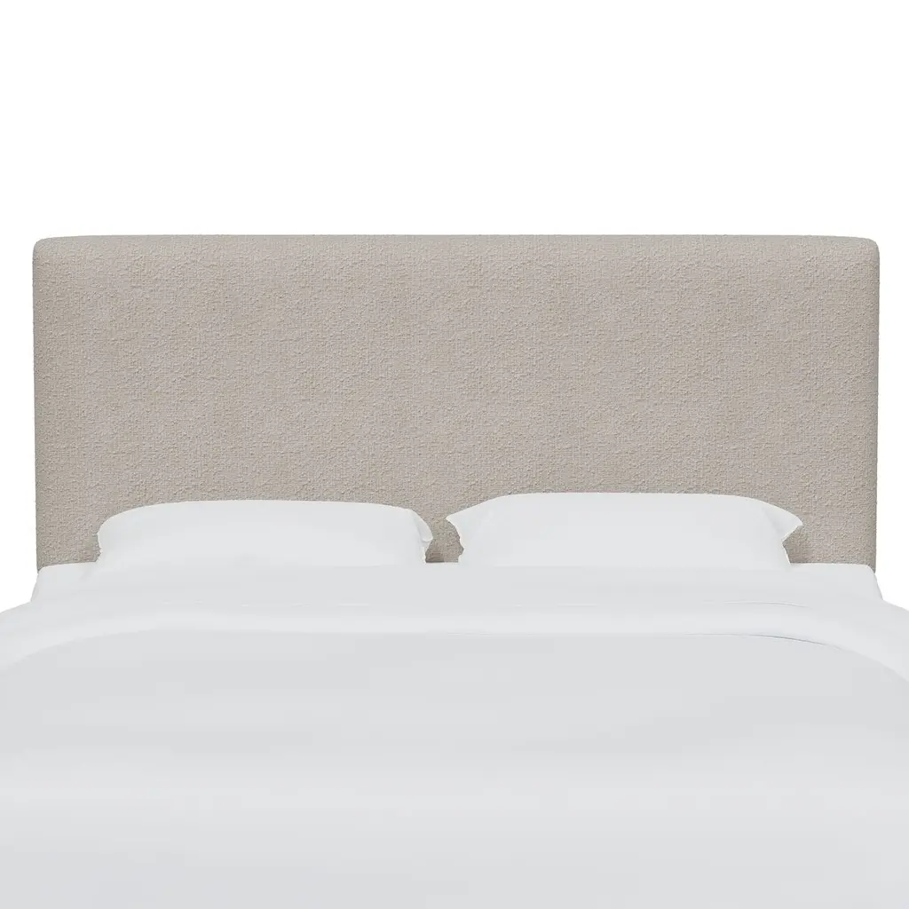 Made in the USA and upholstered in plush bouclé-like fabric, this headboard is elegant in its simplicity. Generous padding ensures long-lasting comfort and support while sitting up to read or watch TV. It easily attaches to just about any standard bed frame.
