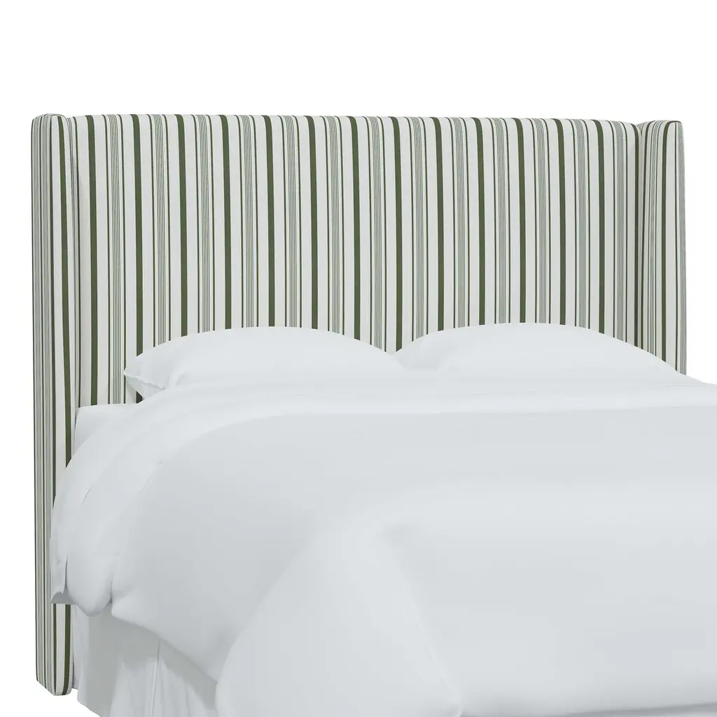 Exclusive to One Kings Lane: Stripes with haberdashery flair distinguish this clean-lined headboard. Ample padding makes it ideal for anyone who enjoys reading or watching TV in bed.
