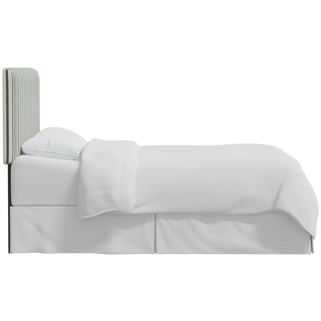 Exclusive to One Kings Lane: Stripes with haberdashery flair distinguish this clean-lined headboard. Ample padding makes it ideal for anyone who enjoys reading or watching TV in bed.