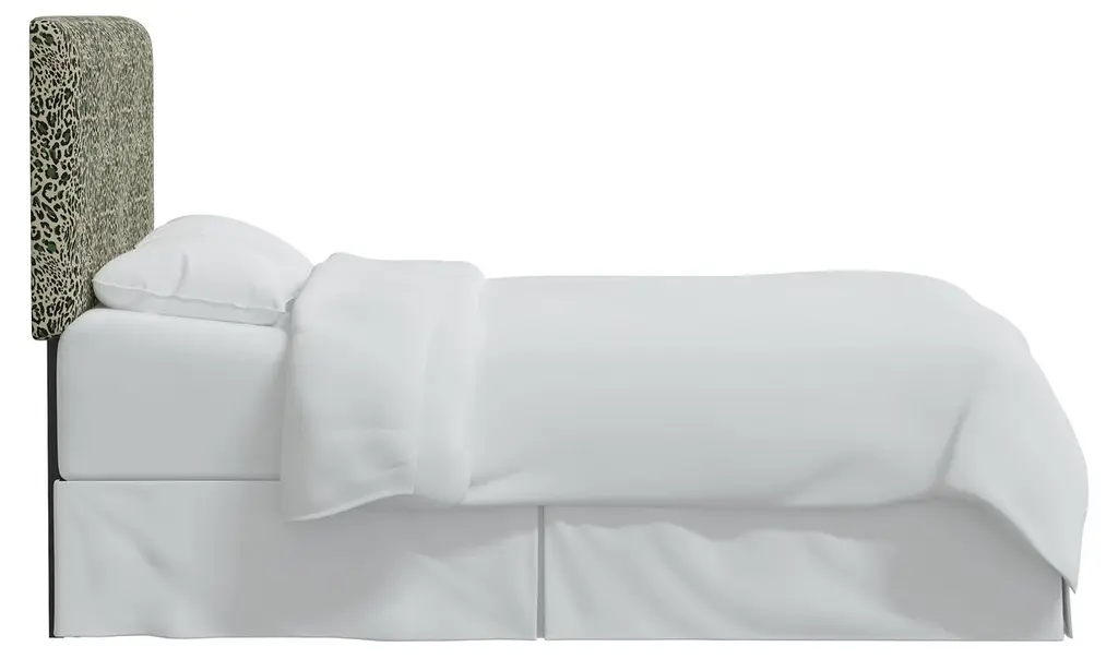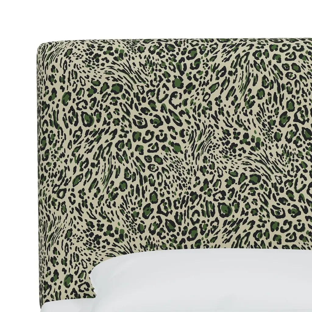 Exclusive to One Kings Lane: Leopard-print upholstery brings timeless glamour to the clean lines of this headboard. Generous padding ensures comfortable support when reading or watching TV in bed. Made in the USA, the headboard has metal legs that easily attach to any standard bed frame.