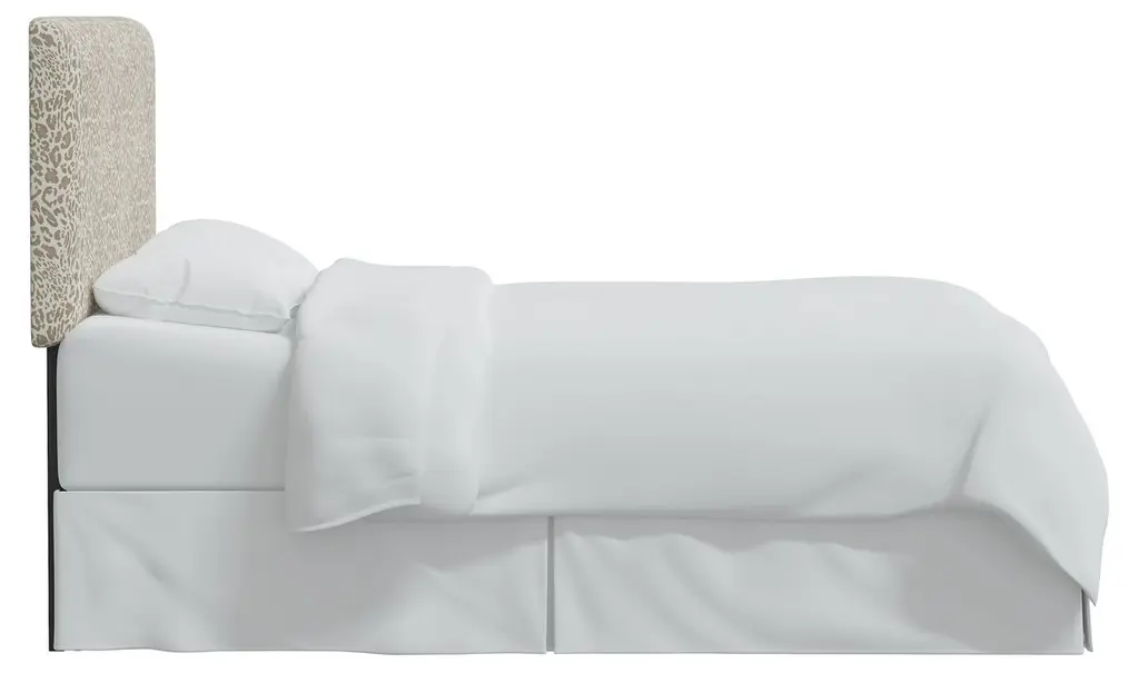 Exclusive to One Kings Lane: Leopard-print upholstery brings timeless glamour to the clean lines of this headboard. Generous padding ensures comfortable support when reading or watching TV in bed. Made in the USA, the headboard has metal legs that easily attach to any standard bed frame.