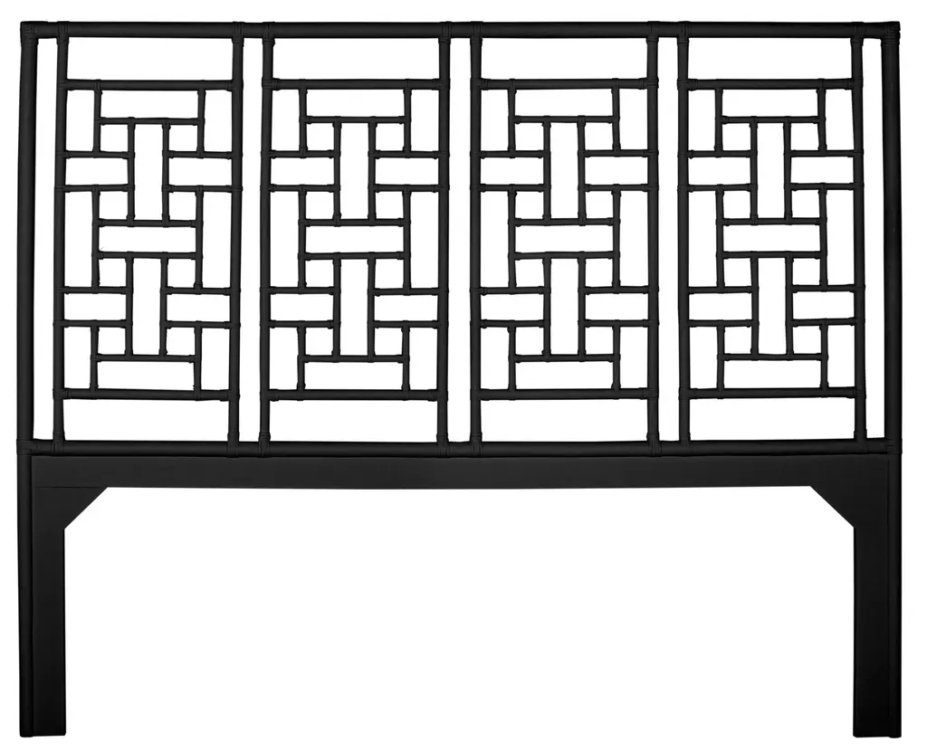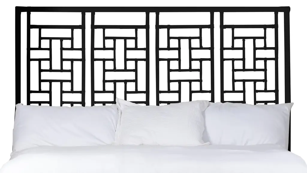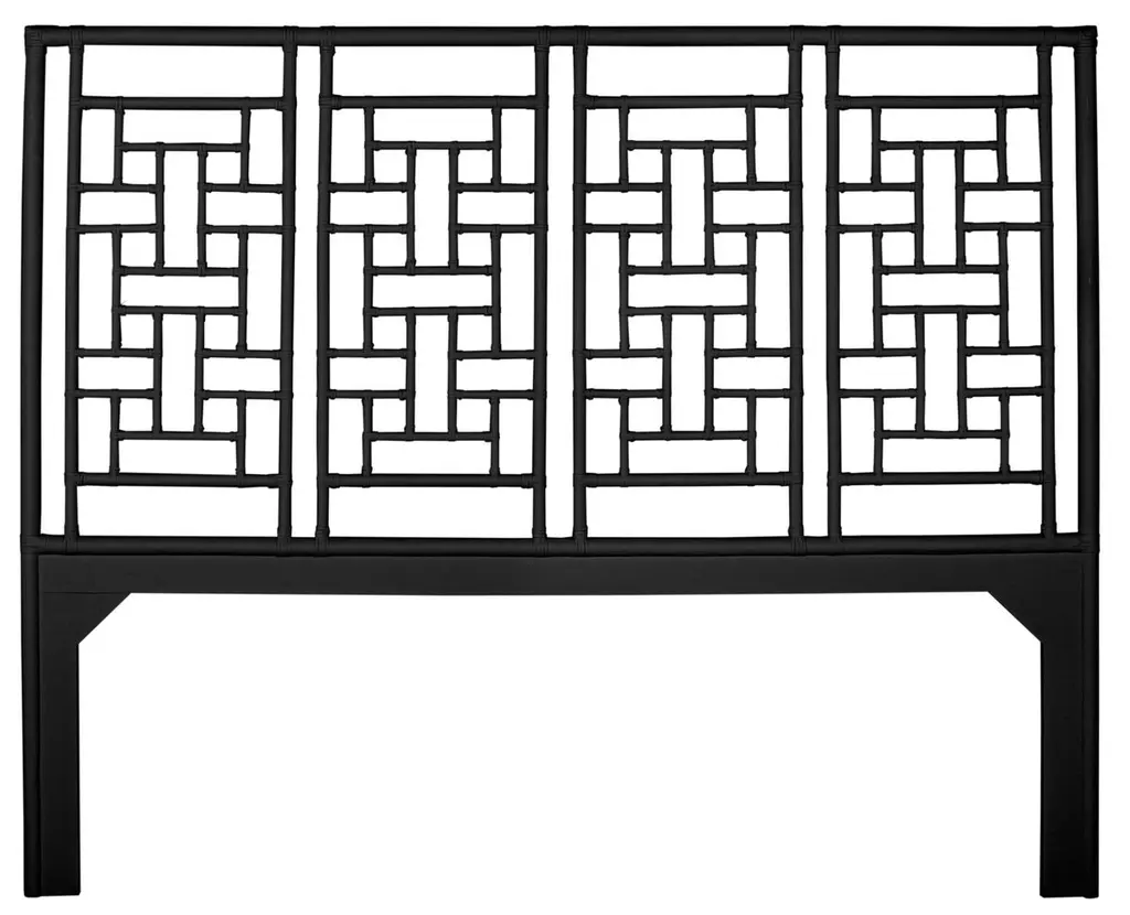 This headboard features classic Rattan design in a geometric pattern. Constructed of solid rattan and hand bound with rawhide bindings. This headboard can be attached to any standard bed frame or hung on the wall. Each headboard is hand finished in the USA and made to order, please allow time for delivery.