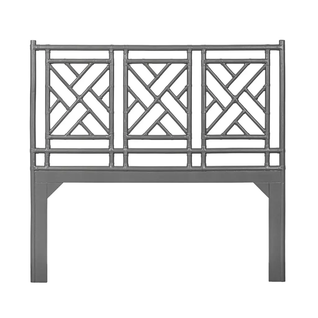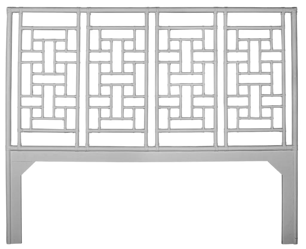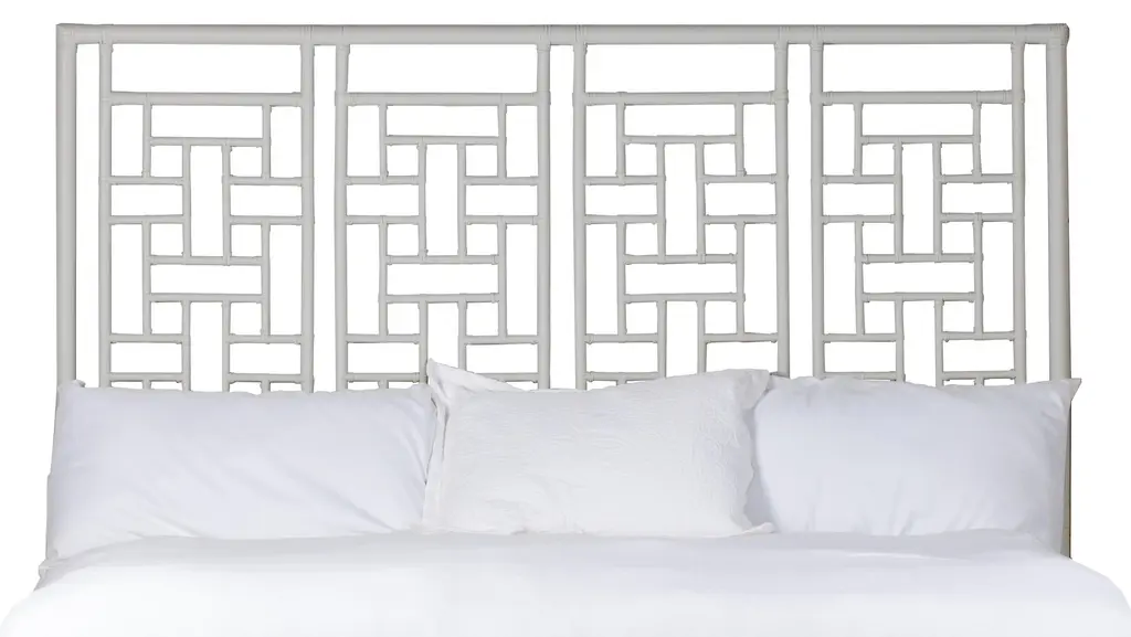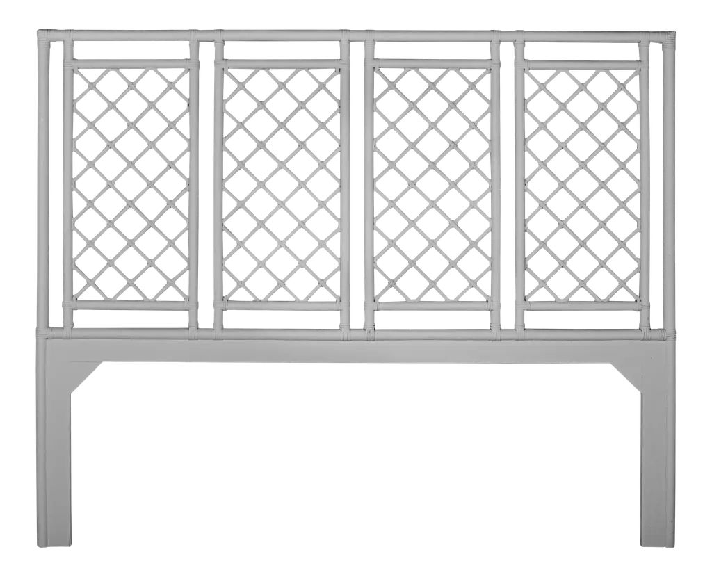 This headboard features classic Rattan design in a geometric pattern. Constructed of solid rattan and hand bound with rawhide bindings. This headboard can be attached to any standard bed frame or hung on the wall. Each headboard is hand finished in the USA and made to order, please allow time for delivery.