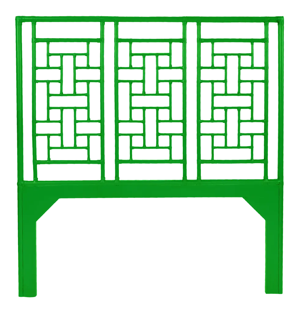 This headboard features classic Rattan design in a geometric pattern. Constructed of solid rattan and hand bound with rawhide bindings. This headboard can be attached to any standard bed frame or hung on the wall. Each headboard is hand finished in the USA and made to order, please allow time for delivery.
