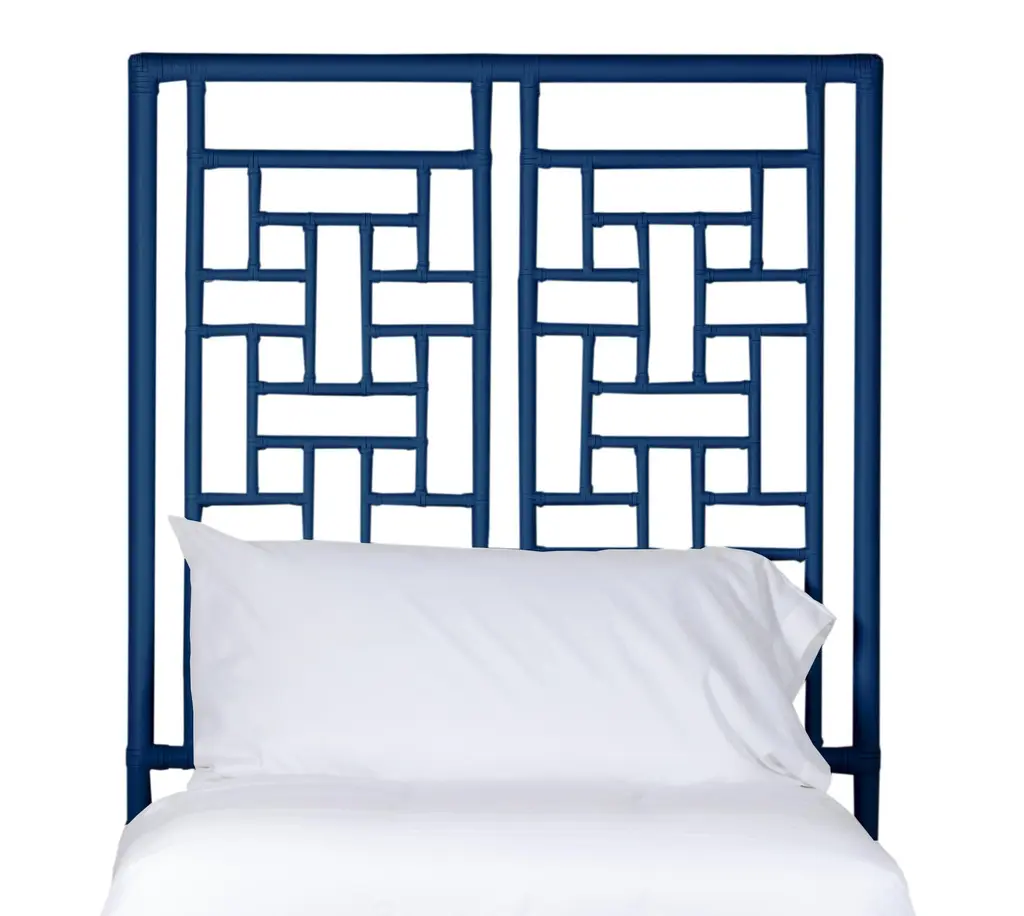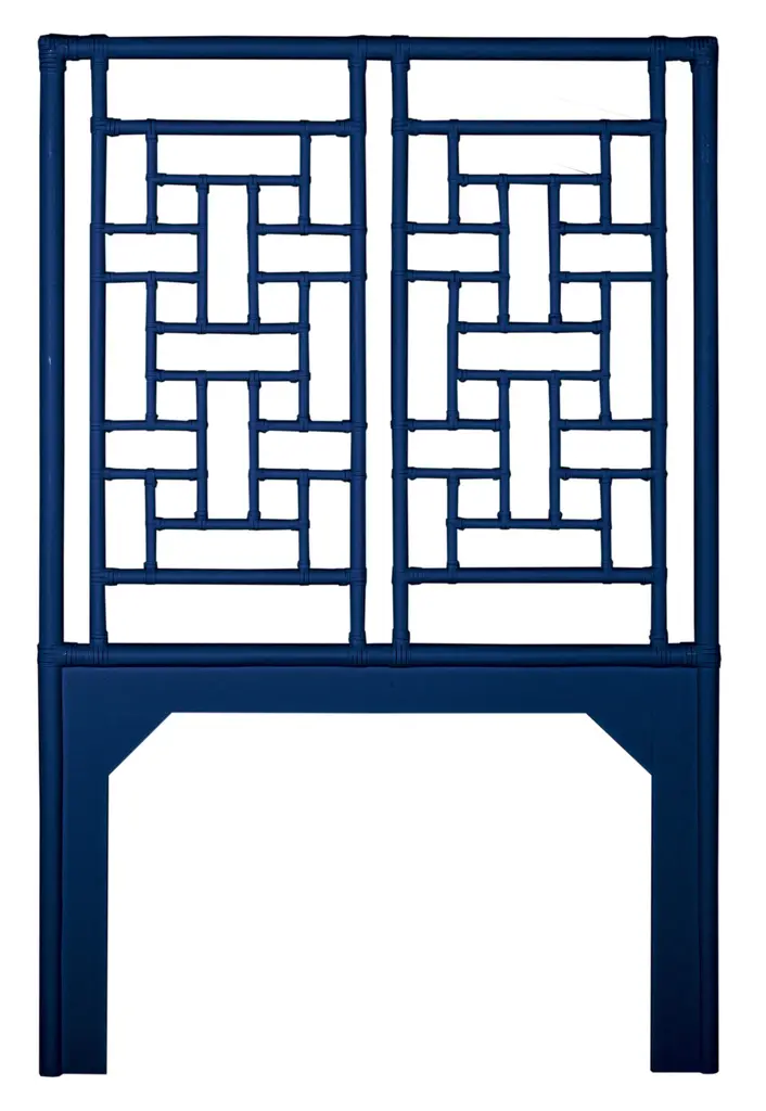 This headboard features classic Rattan design in a geometric pattern. Constructed of solid rattan and hand bound with rawhide bindings. This headboard can be attached to any standard bed frame or hung on the wall. Each headboard is hand finished in the USA and made to order, please allow time for delivery.