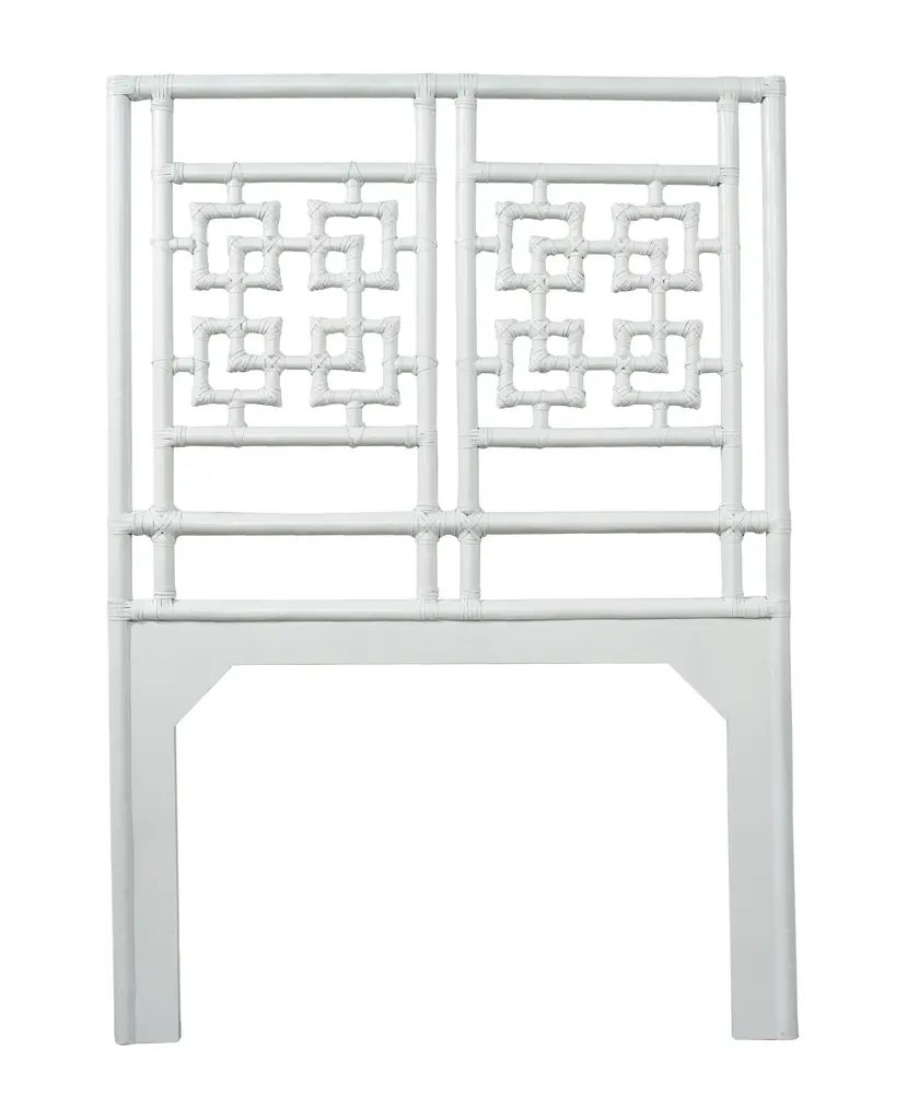 This headboard features classic Rattan design in a geometric pattern. Constructed of solid rattan and hand bound with rawhide bindings. This headboard can be attached to any standard bed frame or hung on the wall. Each headboard is hand finished in the USA and made to order, please allow time for delivery.