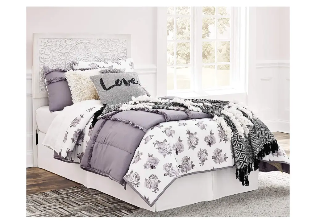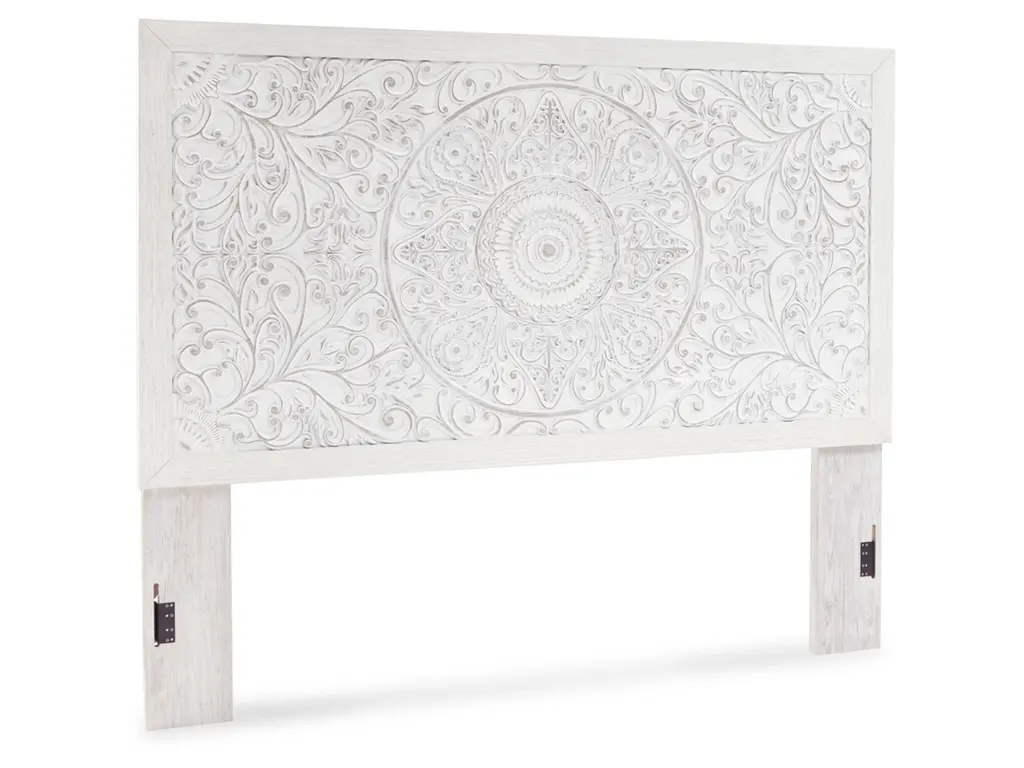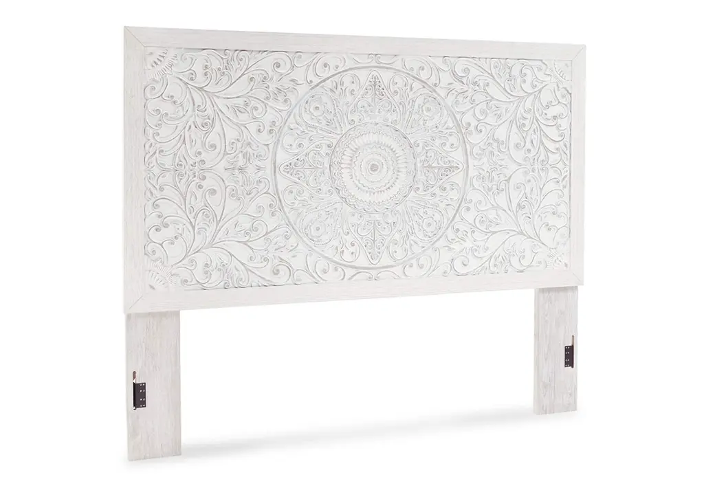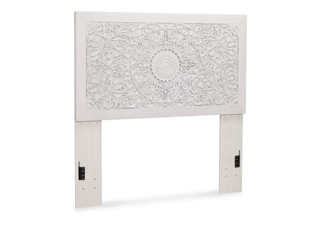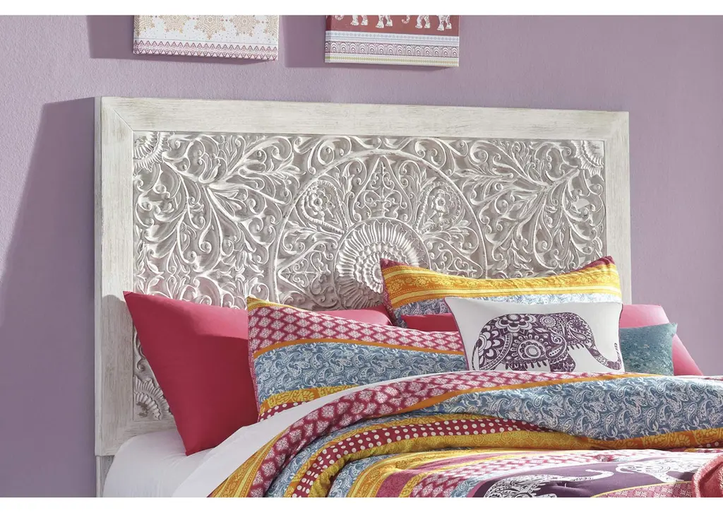 Your young trendsetter can live out her free spirit with the Paxberry twin headboard. Exquisite carved medallion pattern is a testament to boho-chic style. Charming whitewashed finish sets a foundation for a room bursting with personality. Adjustable height design offers added flexibility. Weight 42.200 lbs. (18.99kgs.)