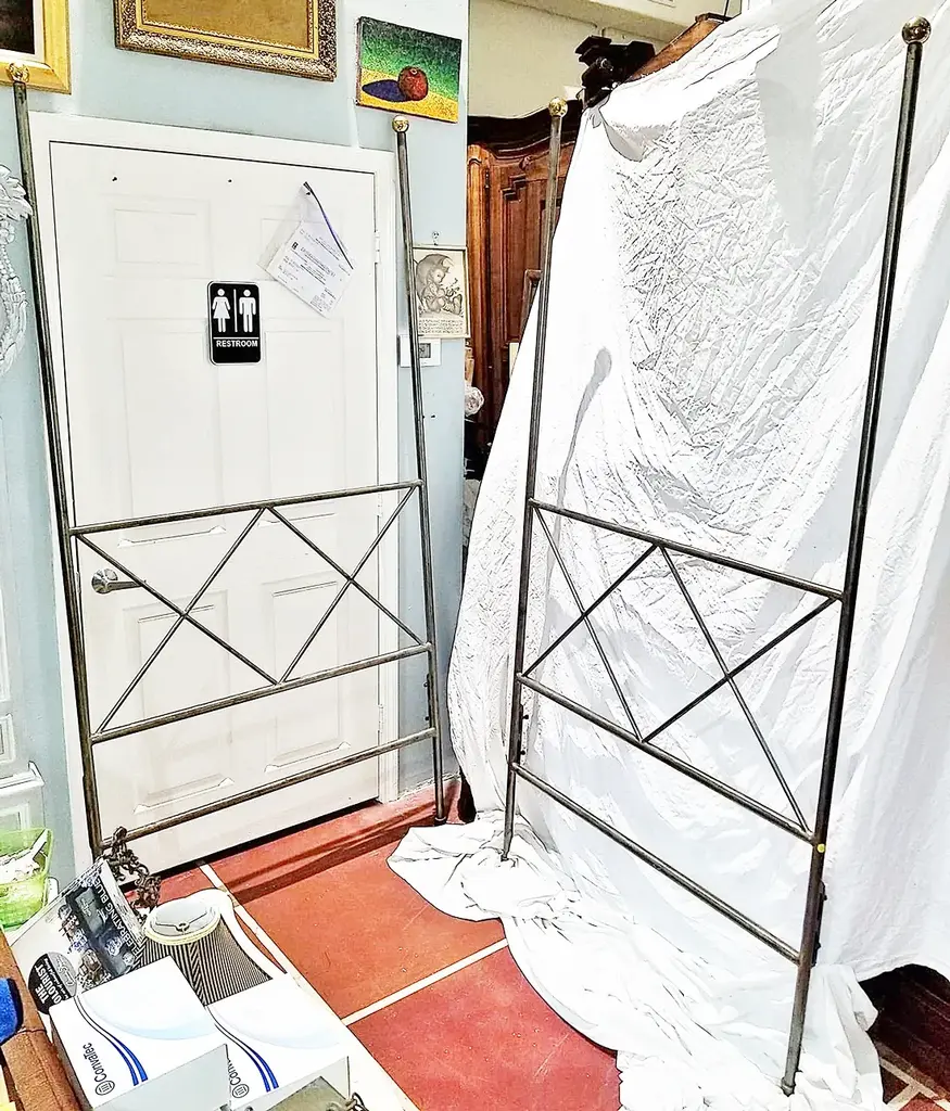 Polished Iron Industrial Twin Bed Headboard, 2 Available